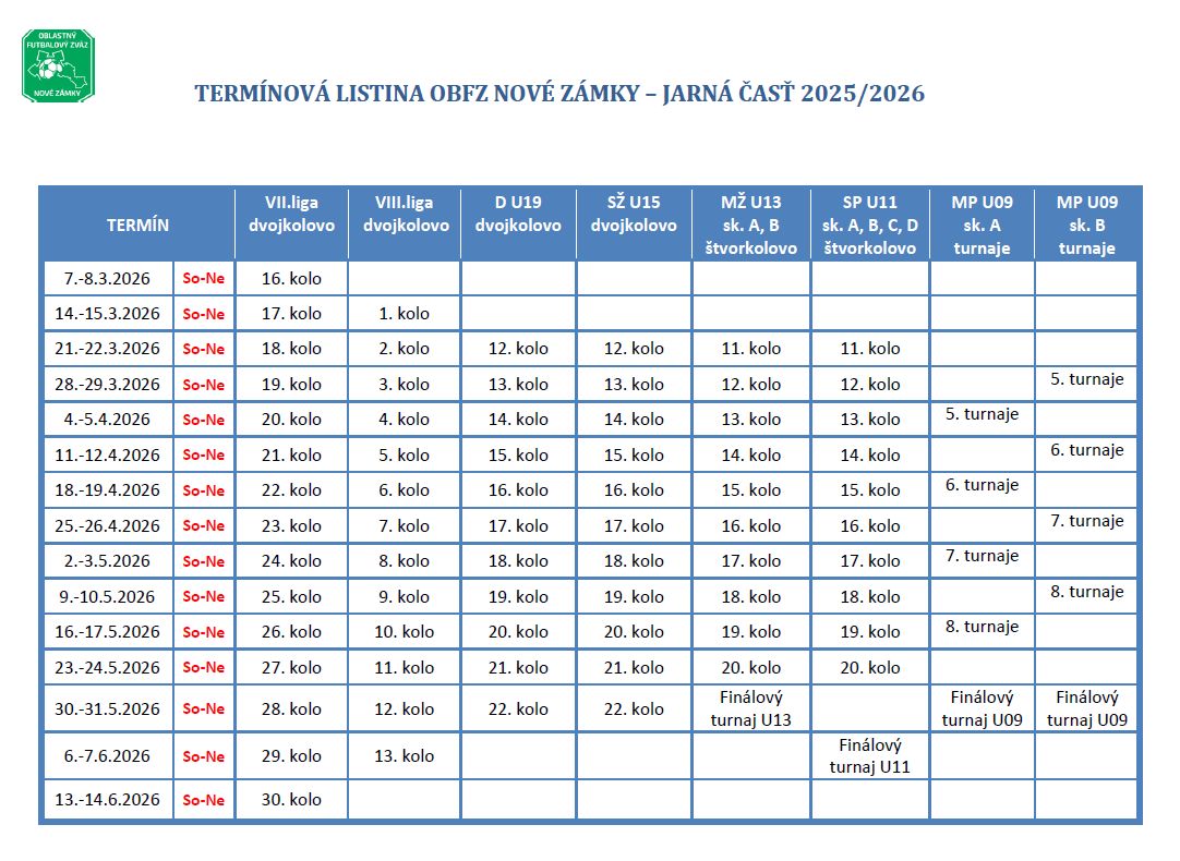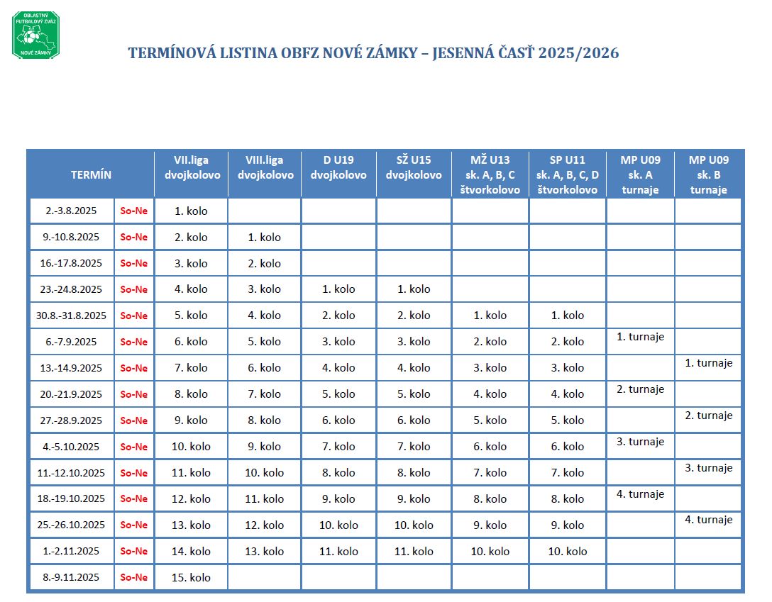 Rozpis majstrovských futbalových súťaží ObFZ Nové Zámky pre súťažný ročník 2025/2026
