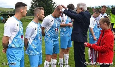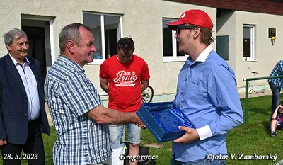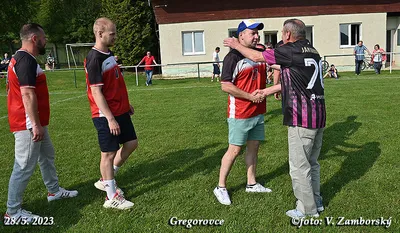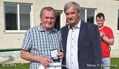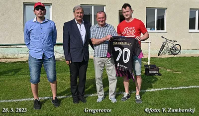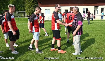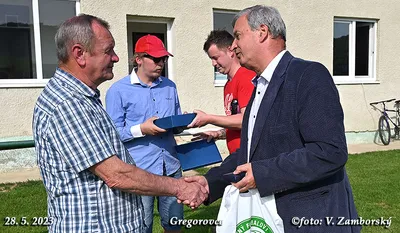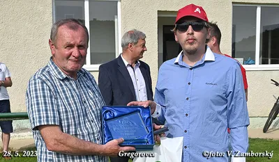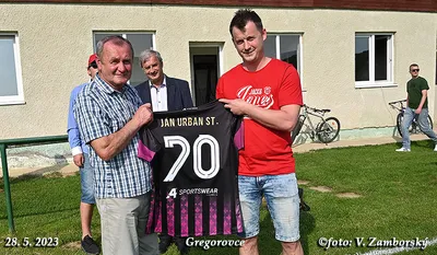 Poslednú nedeľu sa zápas v Gregorovciach nehral, súper nedorazil, no aj napriek tomu v príjemnej atmosfére z rúk podpredsedu ObFZ Prešov Pavla Šuhaja prevzal Ján Urban pri príležitosti životného jubilea 70. narodenín Striebornú medailu ObFZ za dlhoročnú a obetavú činnosť vo futbalovom hnutí. Súčasní funkcionári ŠK Gregorovce jubilantovi udelili pamätnú medailu. Srdečne blahoželáme!