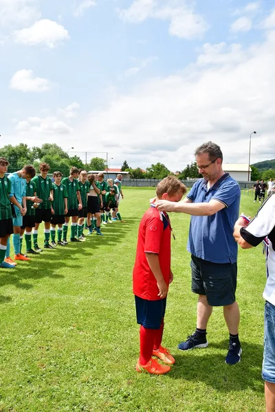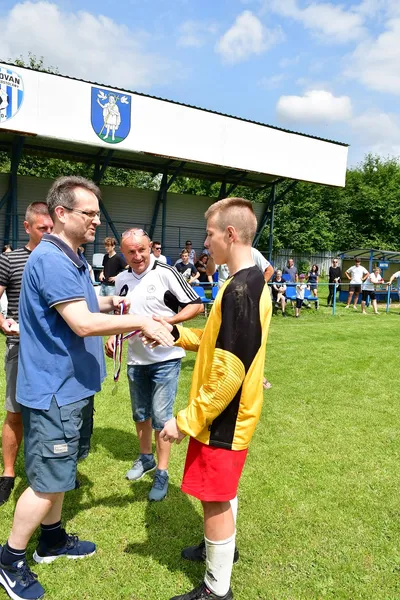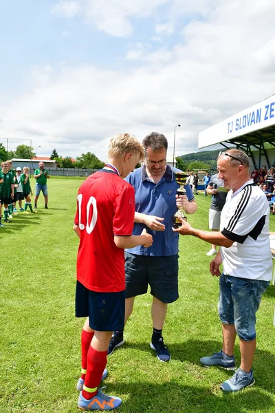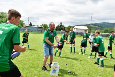Žiaci TJ Sokol Zlatníky si prevzali od predsedu ŠTK ObFZ Prievidza p. Martina Marka medaily za účasť vo finále a pohár.