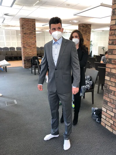 Veľkosť topánok, obvody ramien, pása, stehien, či dĺžka nohavíc – to je len časť procedúry, ktorú absolvovali za asistencie zástupcov exkluzívneho pánskeho módneho domu Marco Mirelli, hráči a realizačný tím slovenskej reprezentácie. „Oblekom sa nevyhýbam, ak na to príde, košielka alebo rolák pod sako - to môžem. Ale je pravda, že skôr dávam prednosť športovému oblečeniu,“ prezradil Martin Koscelník. „Priznám sa, keď si idem vyberať oblek do obchodu sám, nikdy to nie je krátky proces. Jeden oblek skladám aj z troch rôznych veľkostí nohavíc, košele a saka. V rukách odborníkov sa cítim istejšie,“ pochvaľoval si meranie obranca libereckého Slovana.