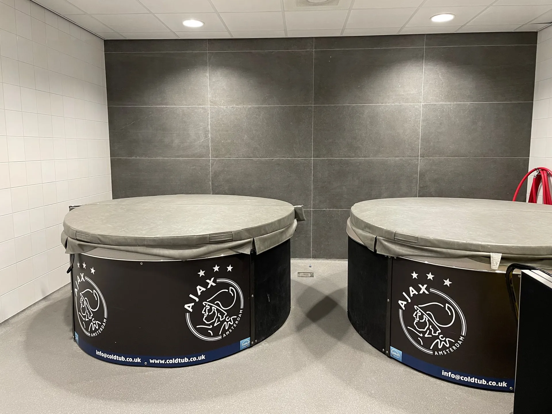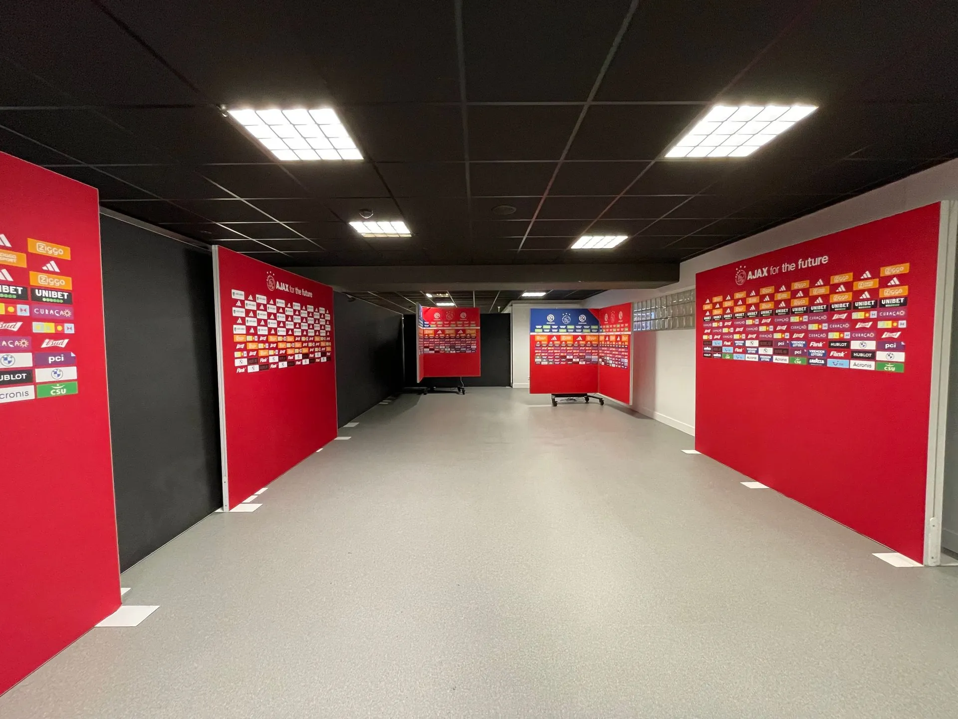 Zo šatne hostí pokračuje cesta hráčskym tunelom na ihrisko. Tunel pôsobí odosobnene, chýbajú motivačné citáty, na stenách sú len veľké plagáty s rokmi víťazstiev Ajaxu v lige, pohári a Lige majstrov.