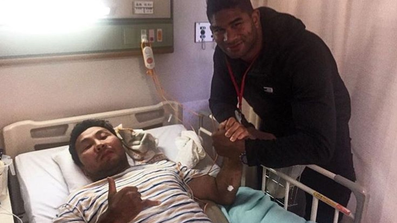 "Počas návštevy Japonska som chcel navštíviť Takayamu (Yosihiro Takayama, pozn. red.), ale jeho stav je taký kritický, že nemôže prijať žiadnych hostí. Ten istý kontakt mi povedal, že jeho najlepší priateľ je Hiromitsu Kanehara, môj bývalý oponent, s ktorým som bojoval pred 13-timi rokmi v mojich „Pride days“. Spýtal som sa, či chce byť môj špeciálny hosť na UFC show tento víkend, ale povedal mi, že to nedokáže, pretože je tiež v nemocnici s veľkými problémami s chrbtom. Tak som sa rozhodol navštíviť ho v nemocnici, aby som ukázal svoj rešpekt k bývalému súperovi a bojovníkovi! Dostaň sa z toho čoskoro Kanehara,“ odkázal svojmu bývalému protivníkovi Overeem.