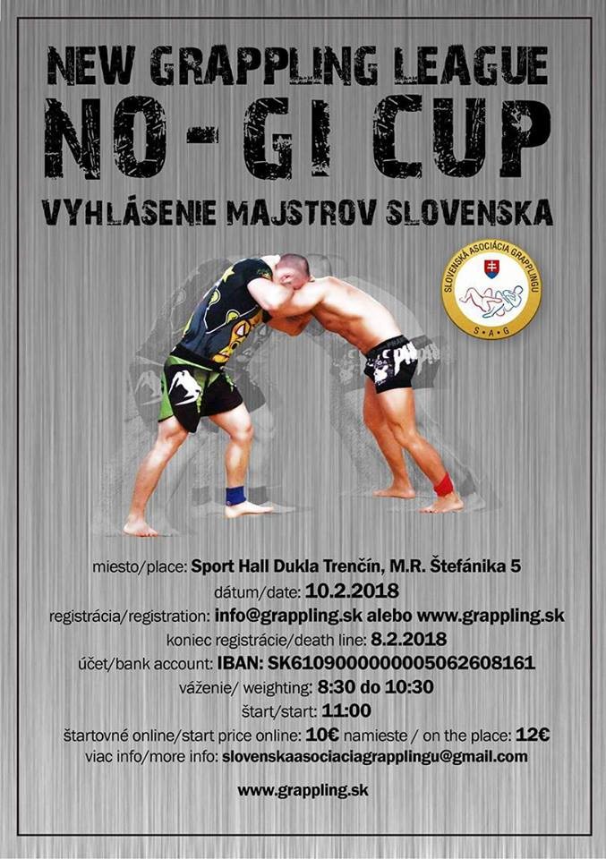 Už o pár dní fanúšikov grapplingu čaká ďalší zo série turnajov NO-GI CUP. V Trenčíne nás čaká finále sezóny 2017, keď boli minulý rok na programe postupne 3 kolá, prvé v Bratislave, druhé v Bánovciach nad Bebravou a tretie v Košiciach.