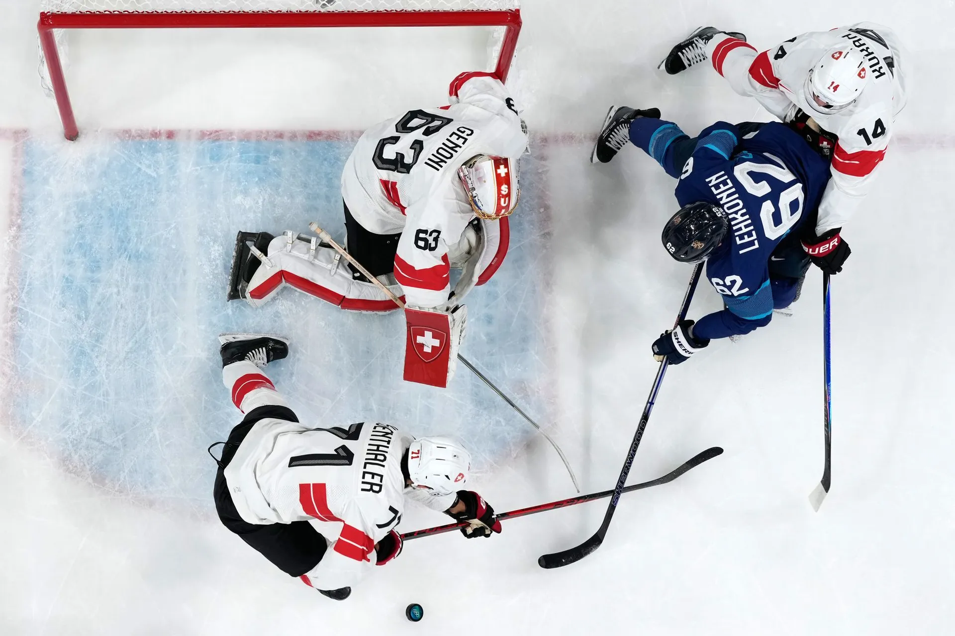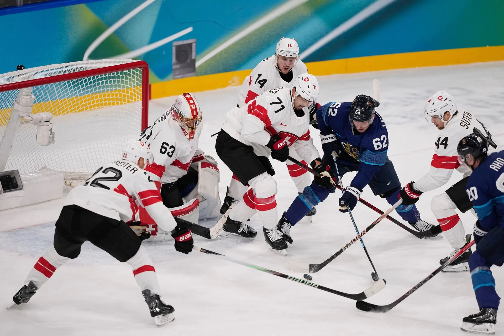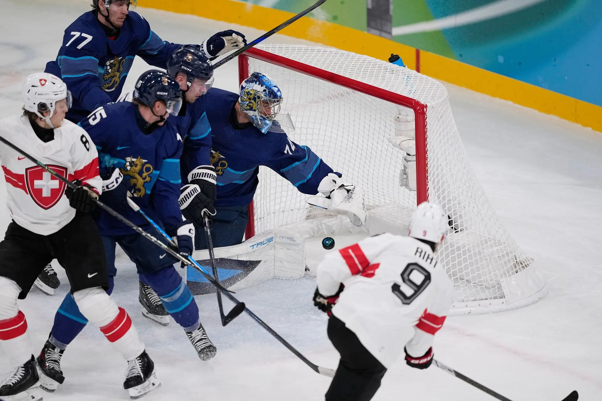 Švajčiarsku sa podarilo v náročnej skupine obsadiť druhé miesto len za hviezdnou Kanadou a v osemfinále si bez problémov poradili s domácim Talianskom, čo ich priviedlo do tohto štvrťfinálového súboja so Suomi.