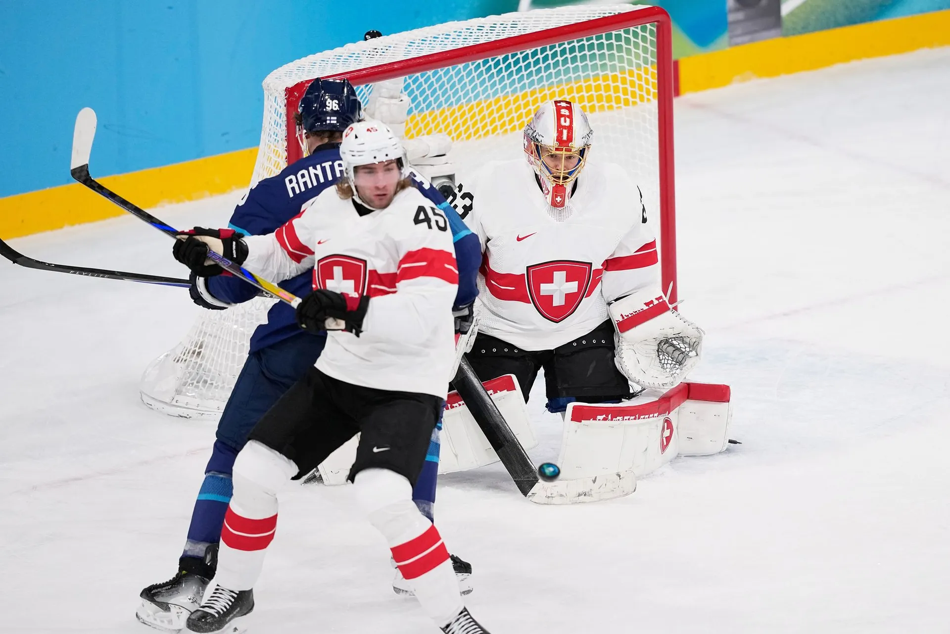 Nepresná prihrávka Rantanena daruje puk Švajčiarom.
