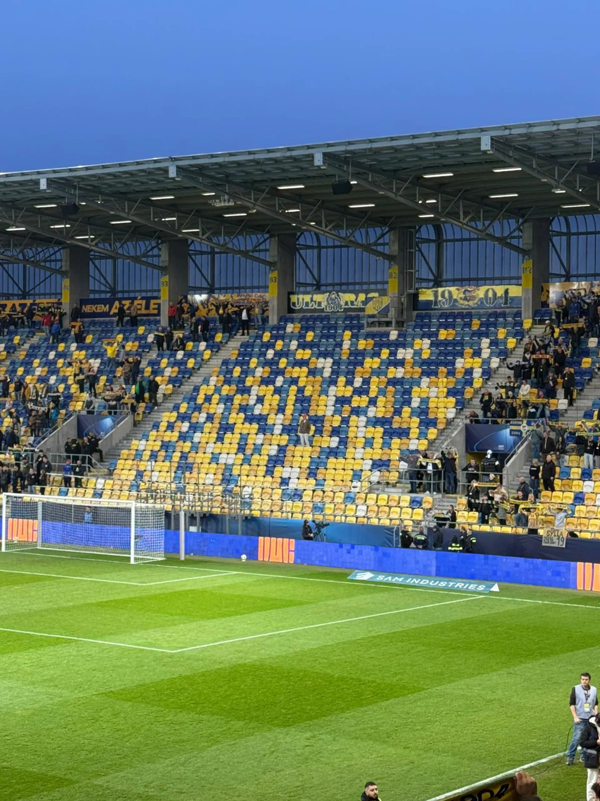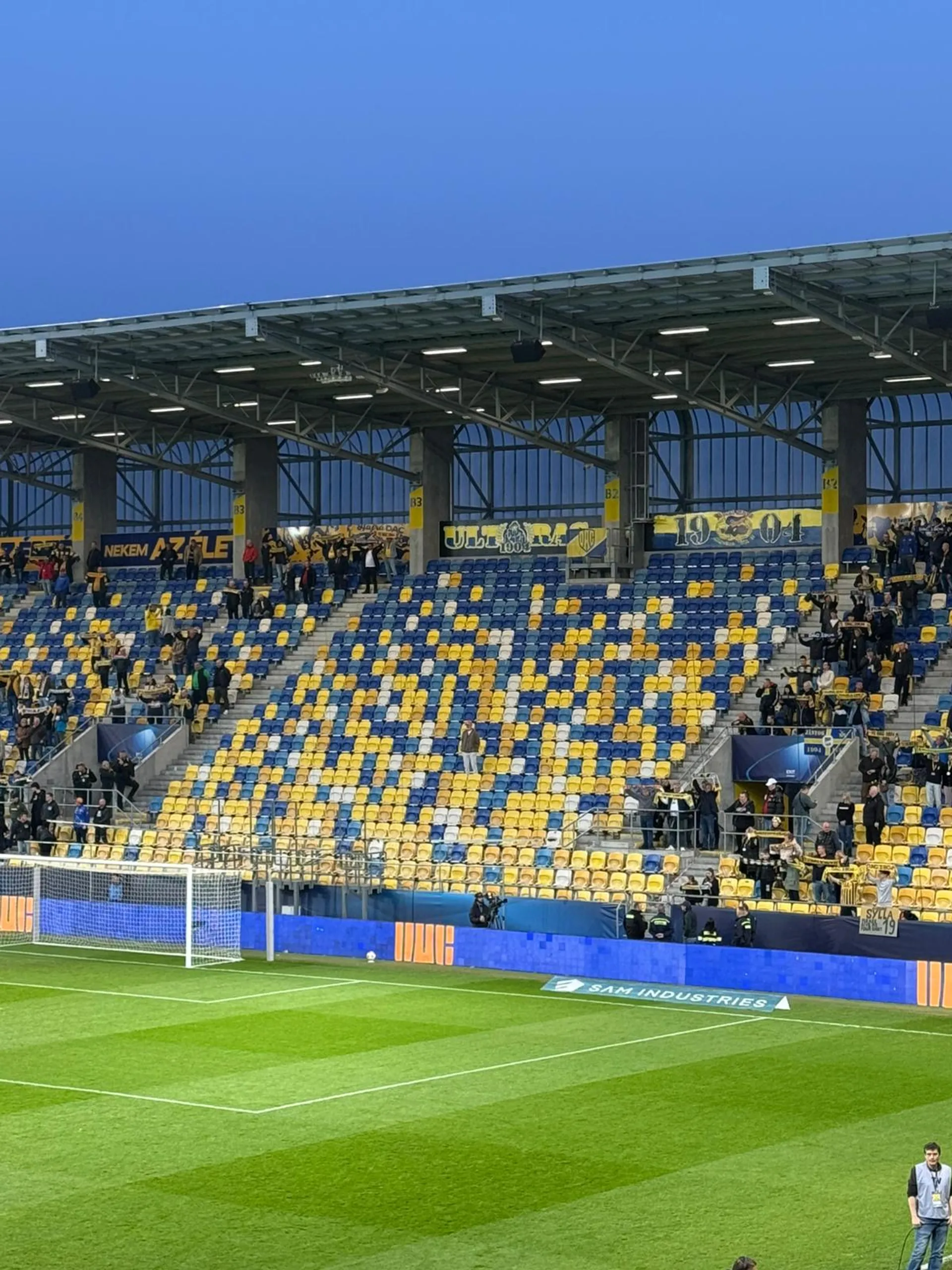 Pred zápasom sa v sektore, v ktorom sa tradične nachádzajú ultras a v nedeľu zíval prázdnotou, objavil nápis, ktorý v maďarčine hovoril „Tak zase o rok”. Na začiatku stretnutia v danom sektore za bránkou stál len majiteľ klubu Oszkár Világi.