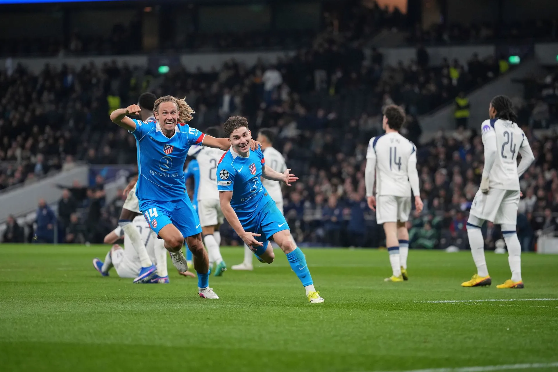 Obranca Atlética Madrid vyrovnával stav zápasu s Tottenhamom Hotspur na priebežných 2:2, čím priblížil svoj tím k postupu, keďže prvý duel na madridskej pôde sa skončil triumfom domácich 5:2.