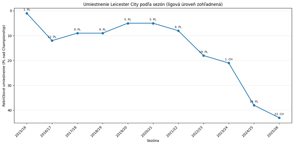 V aktuálnej druholigovej sezóne doplatili aj na odpočítanie šiestich bodov za porušenie finančných pravidiel. Leicester zostúpil z Premier League po sezónach 2022/23 a 2024/25, teraz si pohorší už tretíkrát za štyri roky.