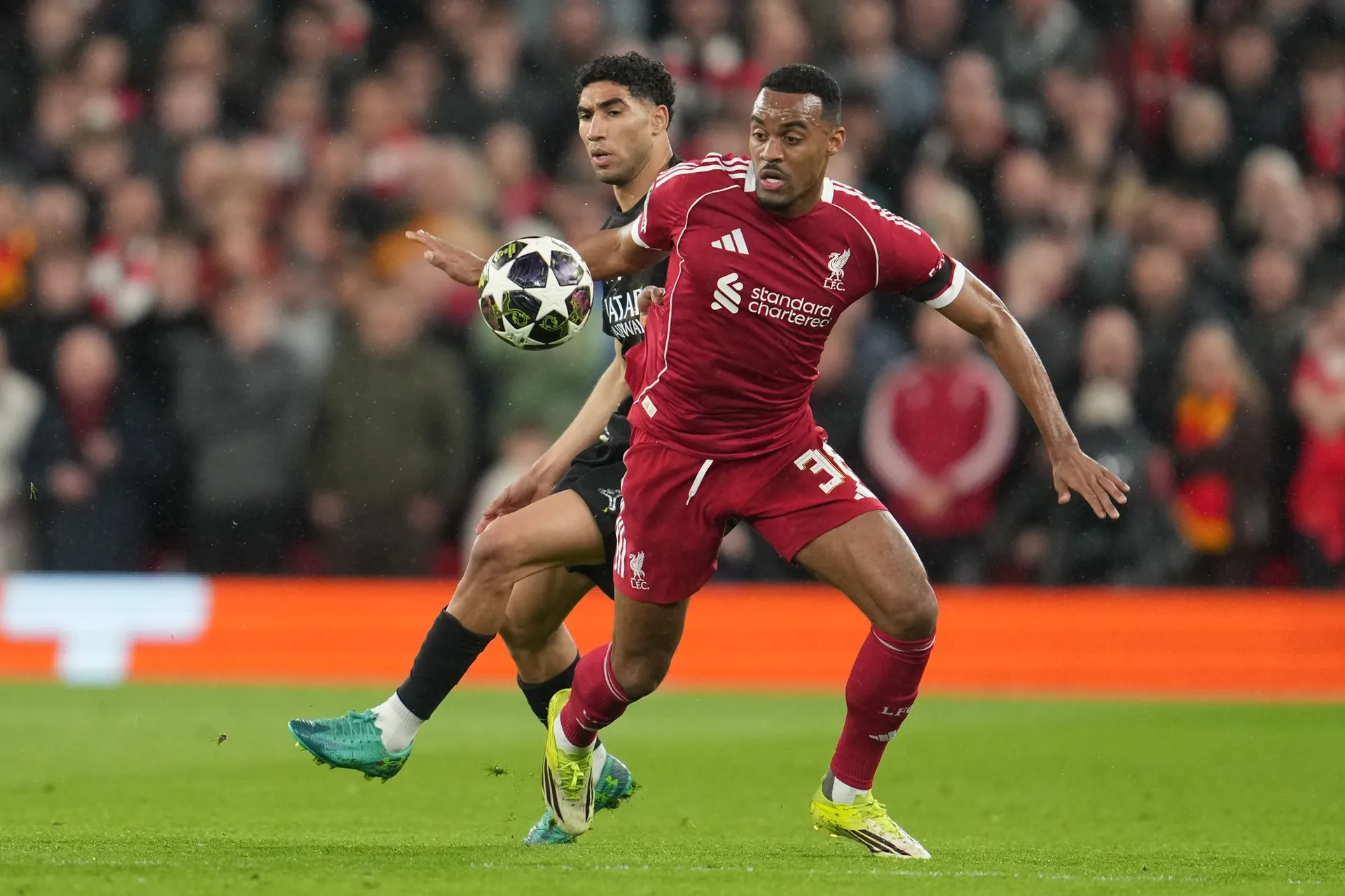 Gravenberch si výborne spracoval prihrávku a dostal sa k strele z hranice pokutového územia, no zakončenie mu nesadlo a lopta minula pravú žrď o niekoľko metrov.