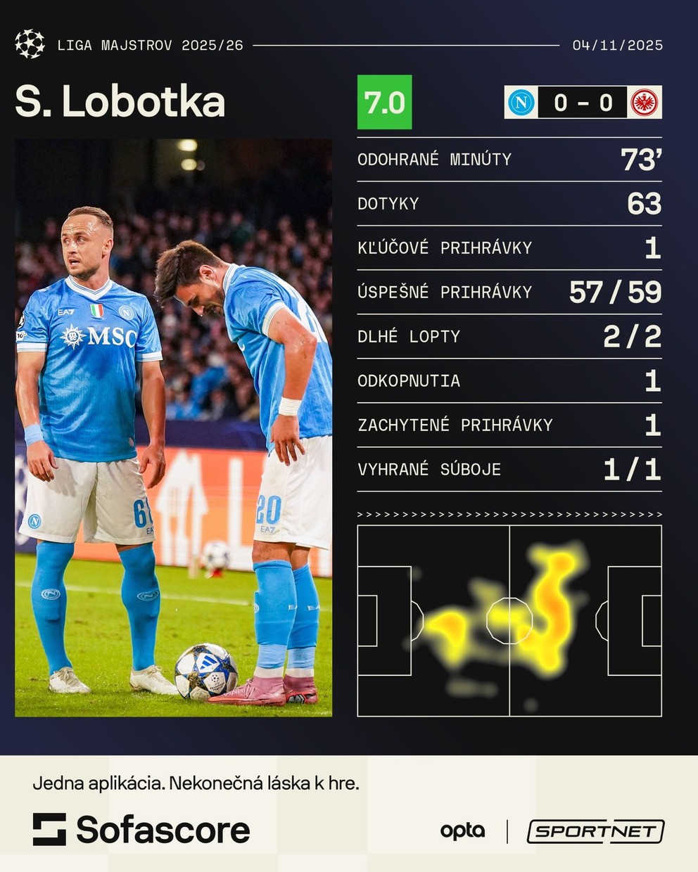 Lobotka proti Frankfurtu nežiaril, ale ani nesklamal – podal štandardný výkon. Hral spoľahlivo, nekazil.