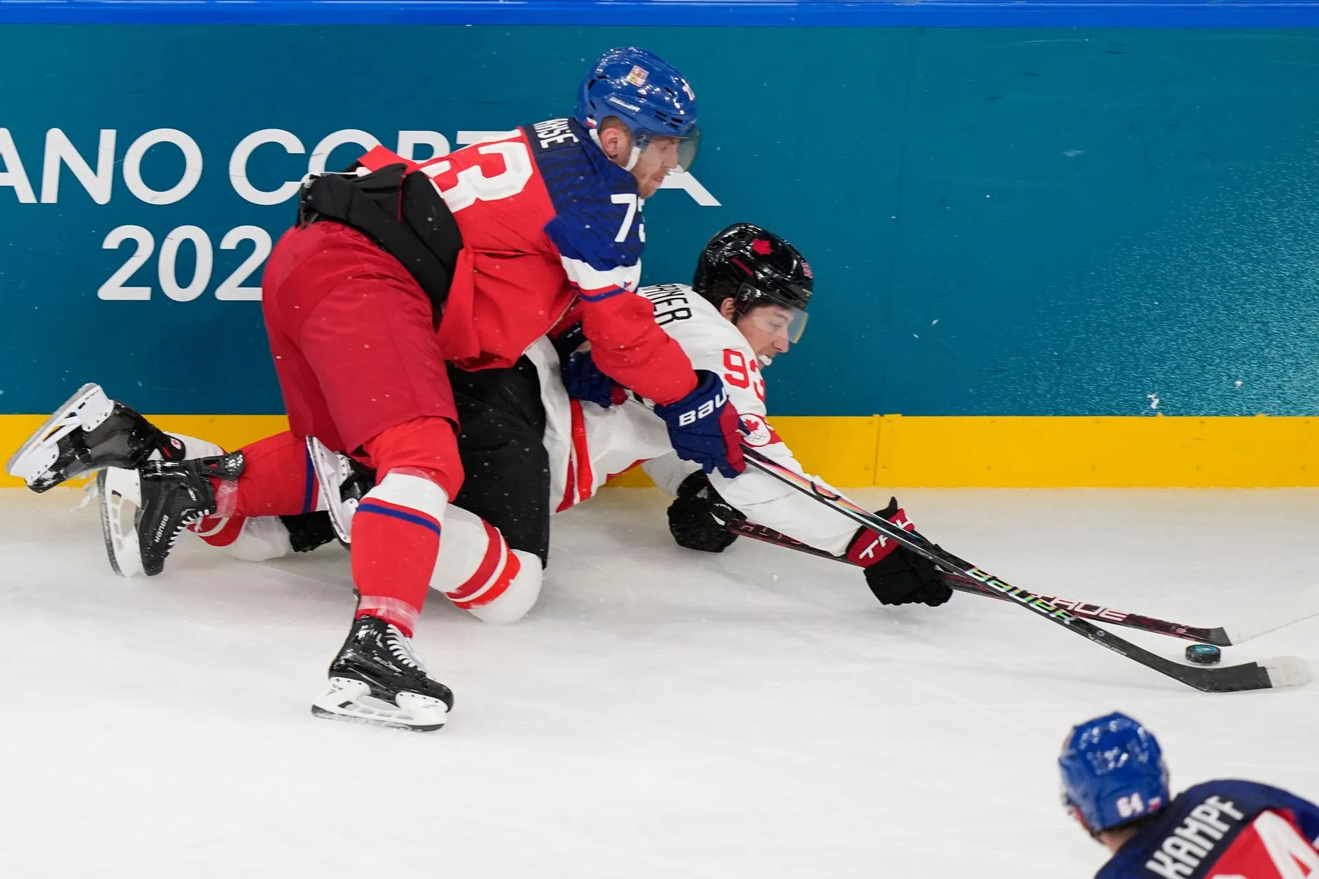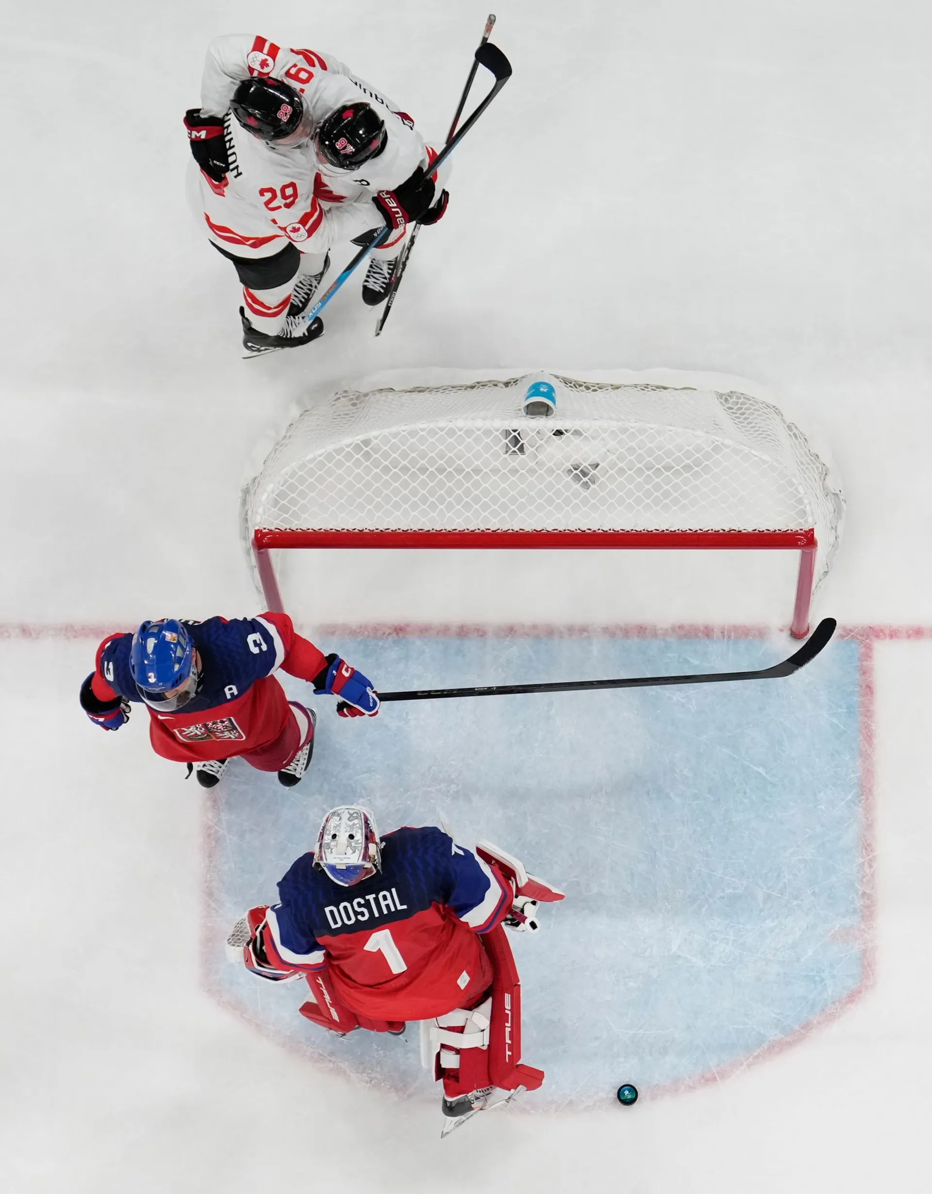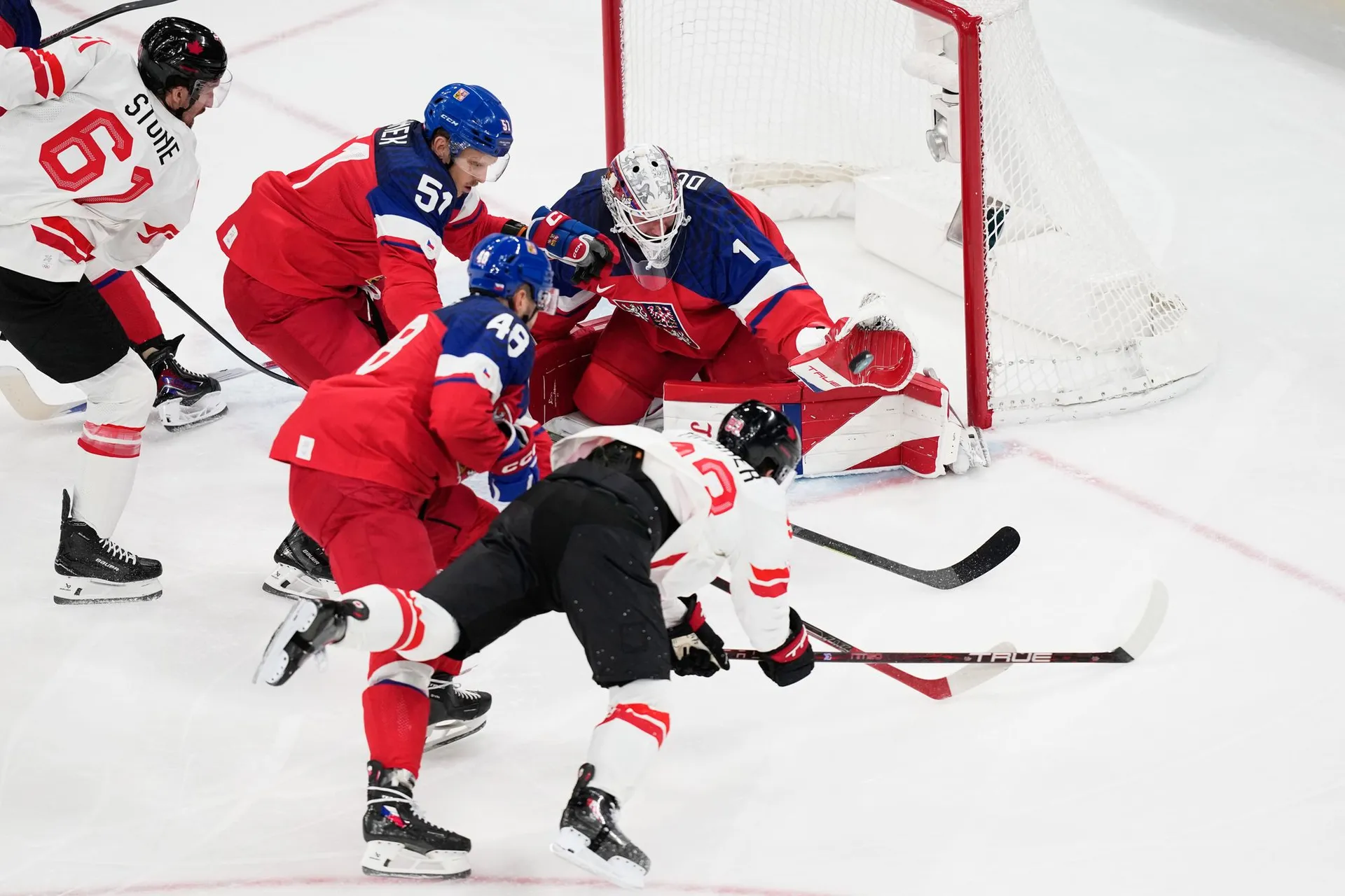 Kanada sa upokojila, držala puk a pokračovala v agresívnom forčekingu. Český tím začal prehrávať súboje v obrannom pásme a ťažšie sa dostával do šancí.