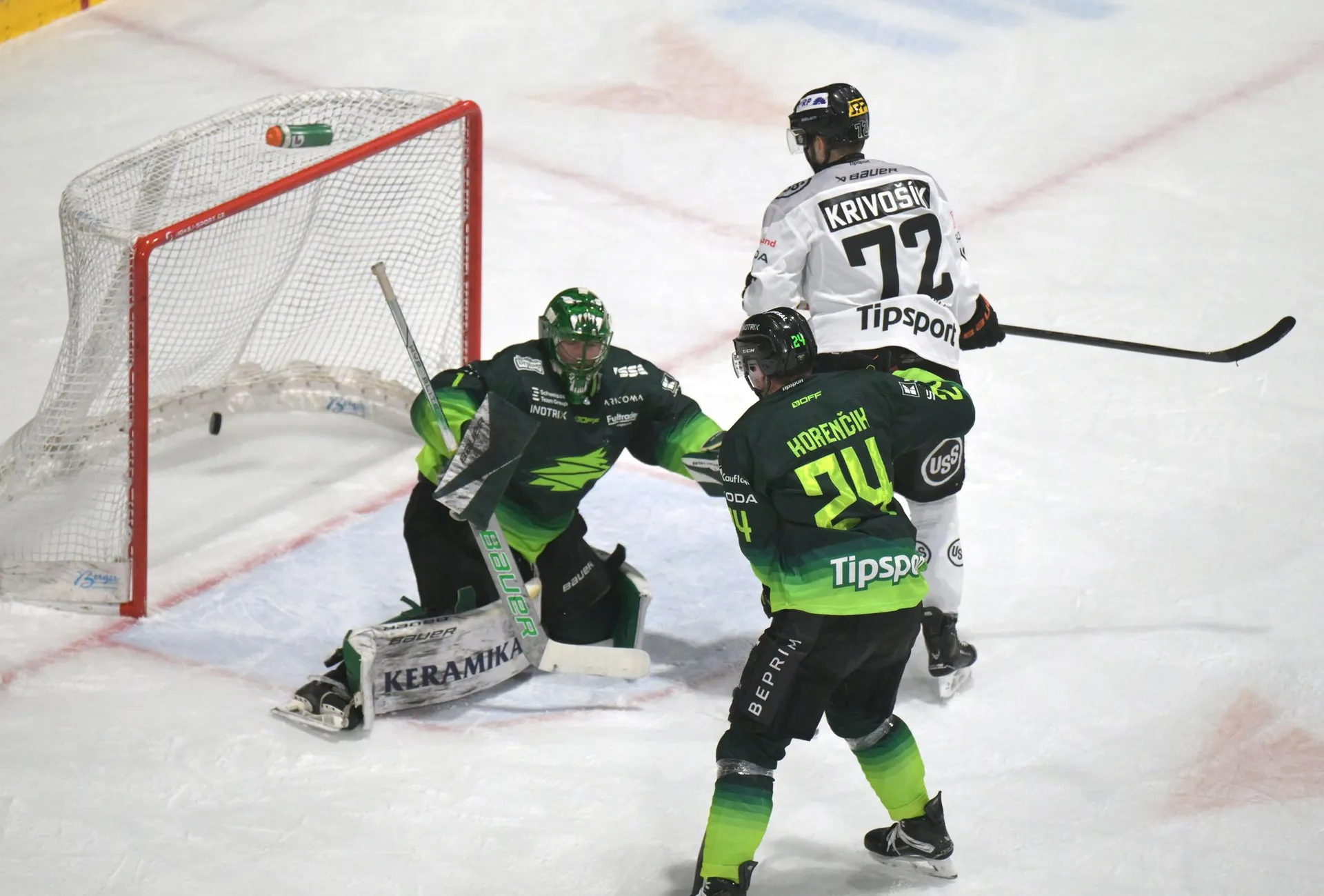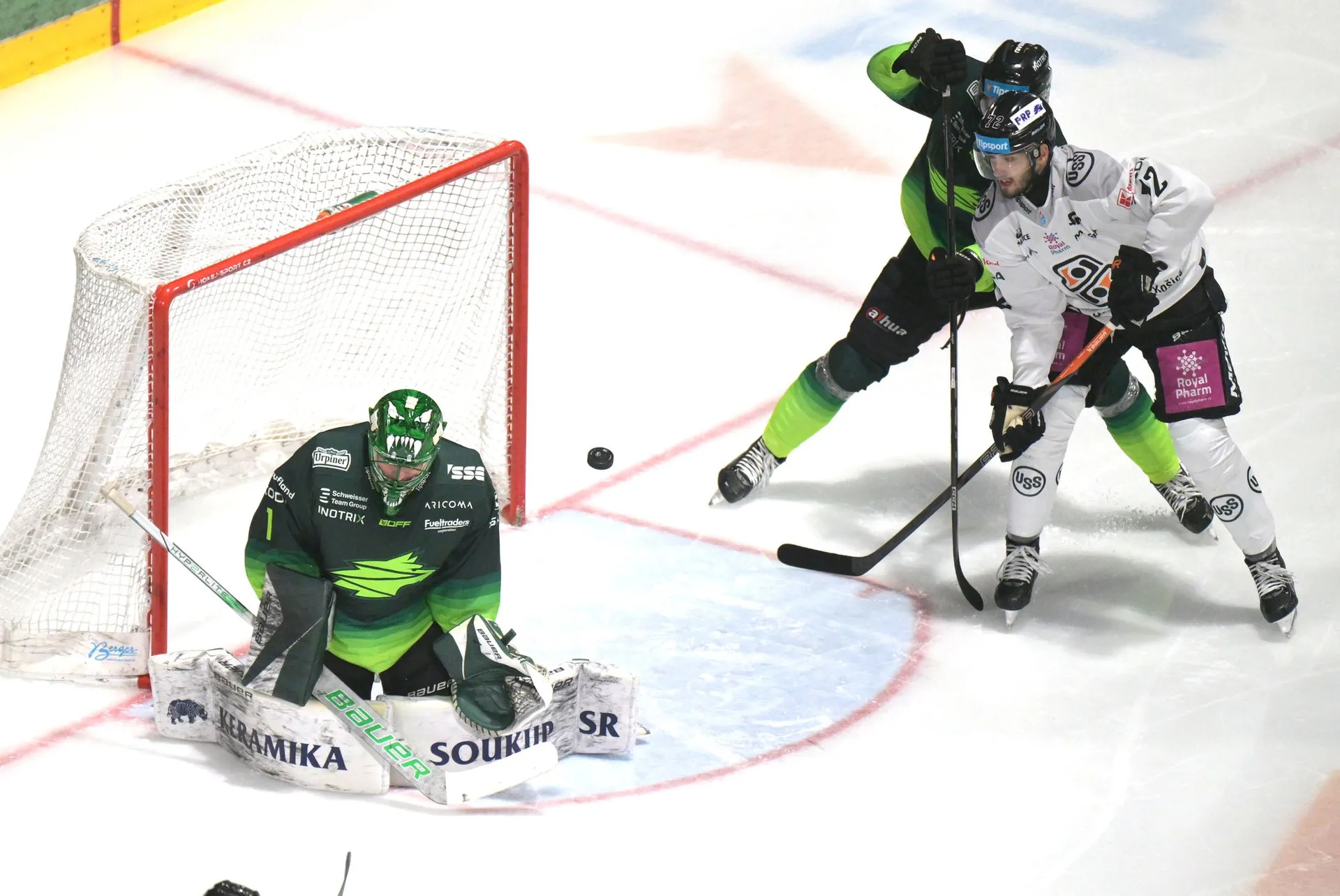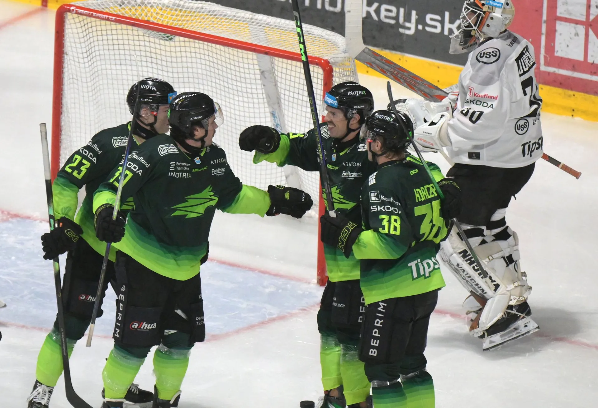 Hostia sa v tretej tretine snažili vyrovnať a Korczak počas hry bez brankára znížil na 3:2, no gólom do prázdnej bránky uzavrel skóre Mikúš.
