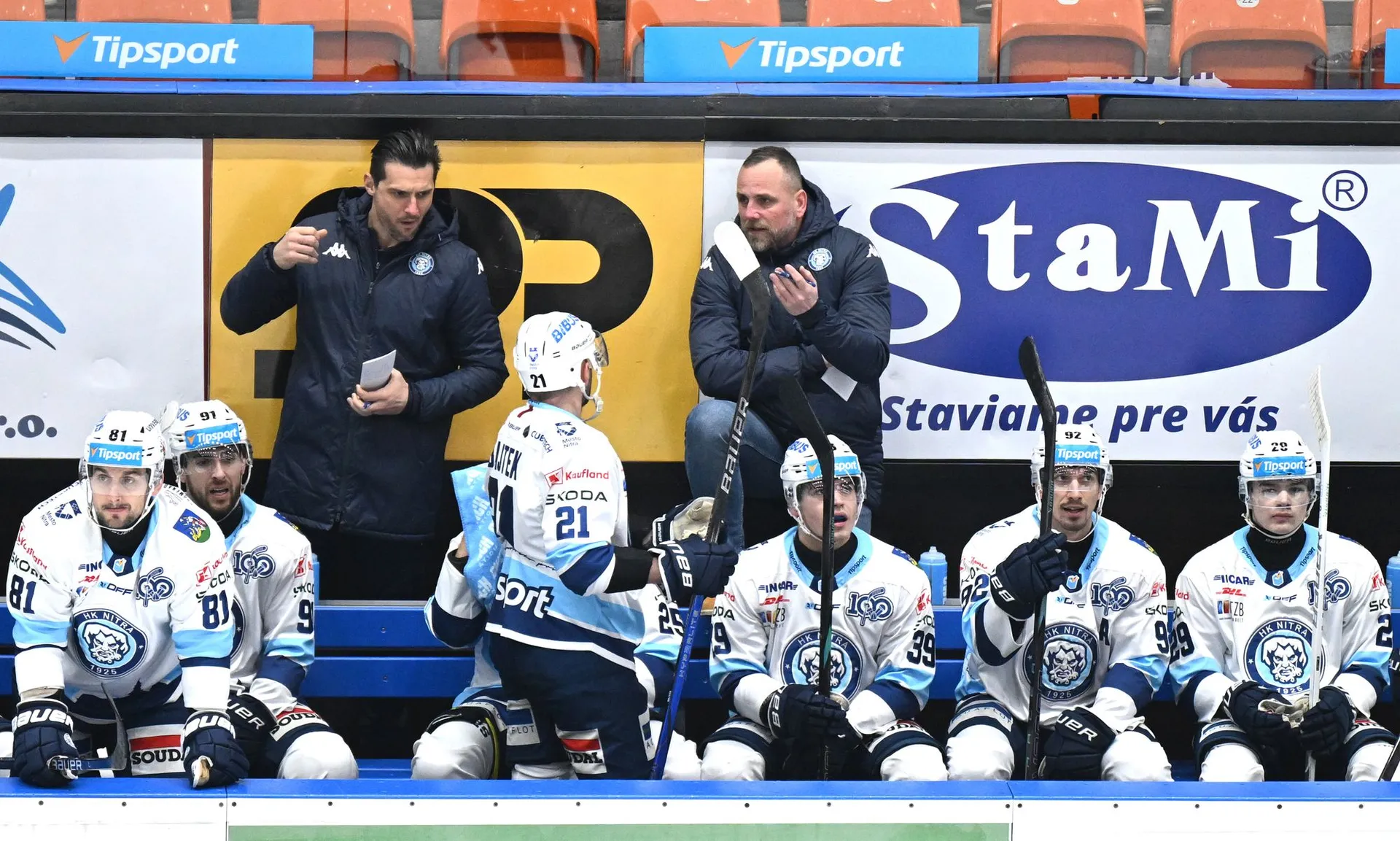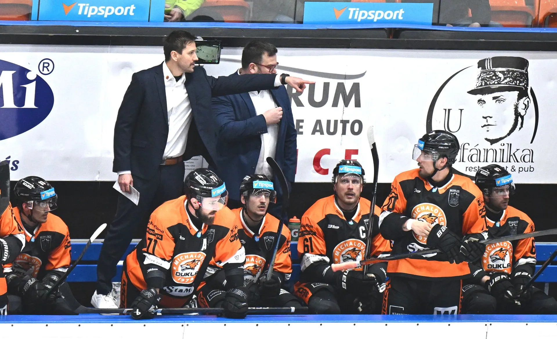 Puk prepadol na hráčsku lavicu a hra je prerušená.