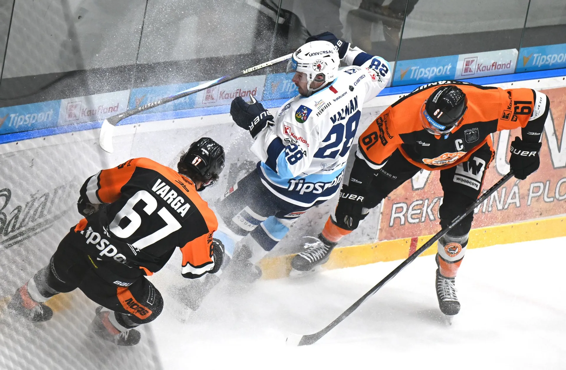 Súboje o puk v rohu klziska pri Glosárovej bránke.