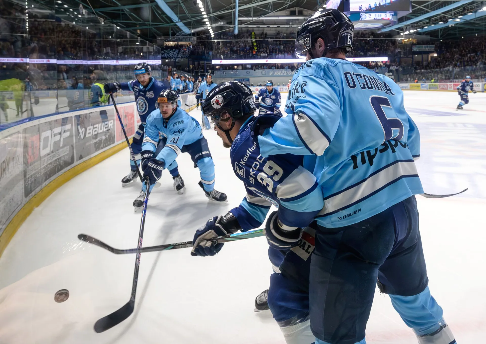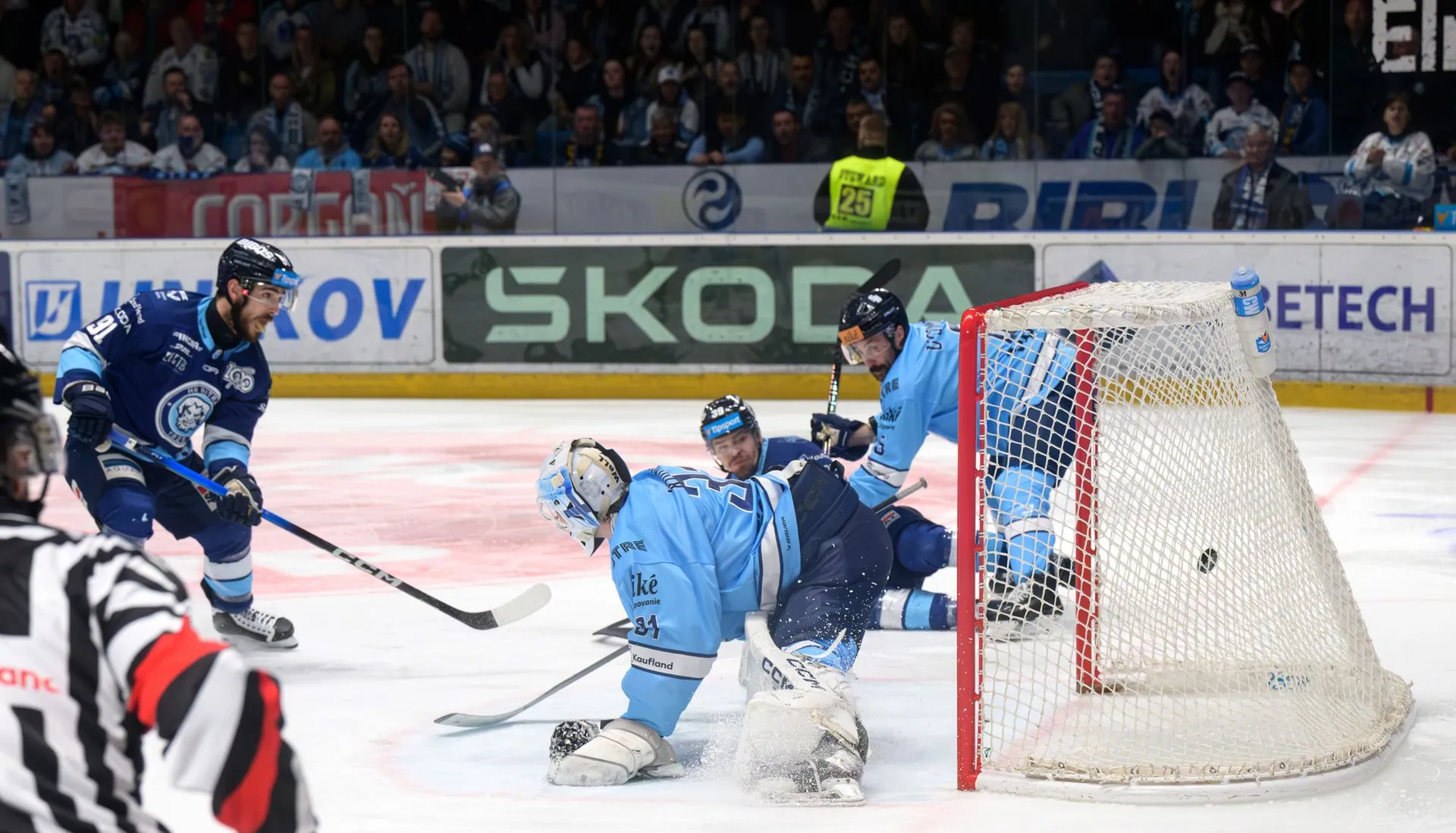 Hosťujúci útočník Dominik Jendek dostal trest za seknutie Michala Krištofa a domáci mali k dispozícii početnú výhodu.