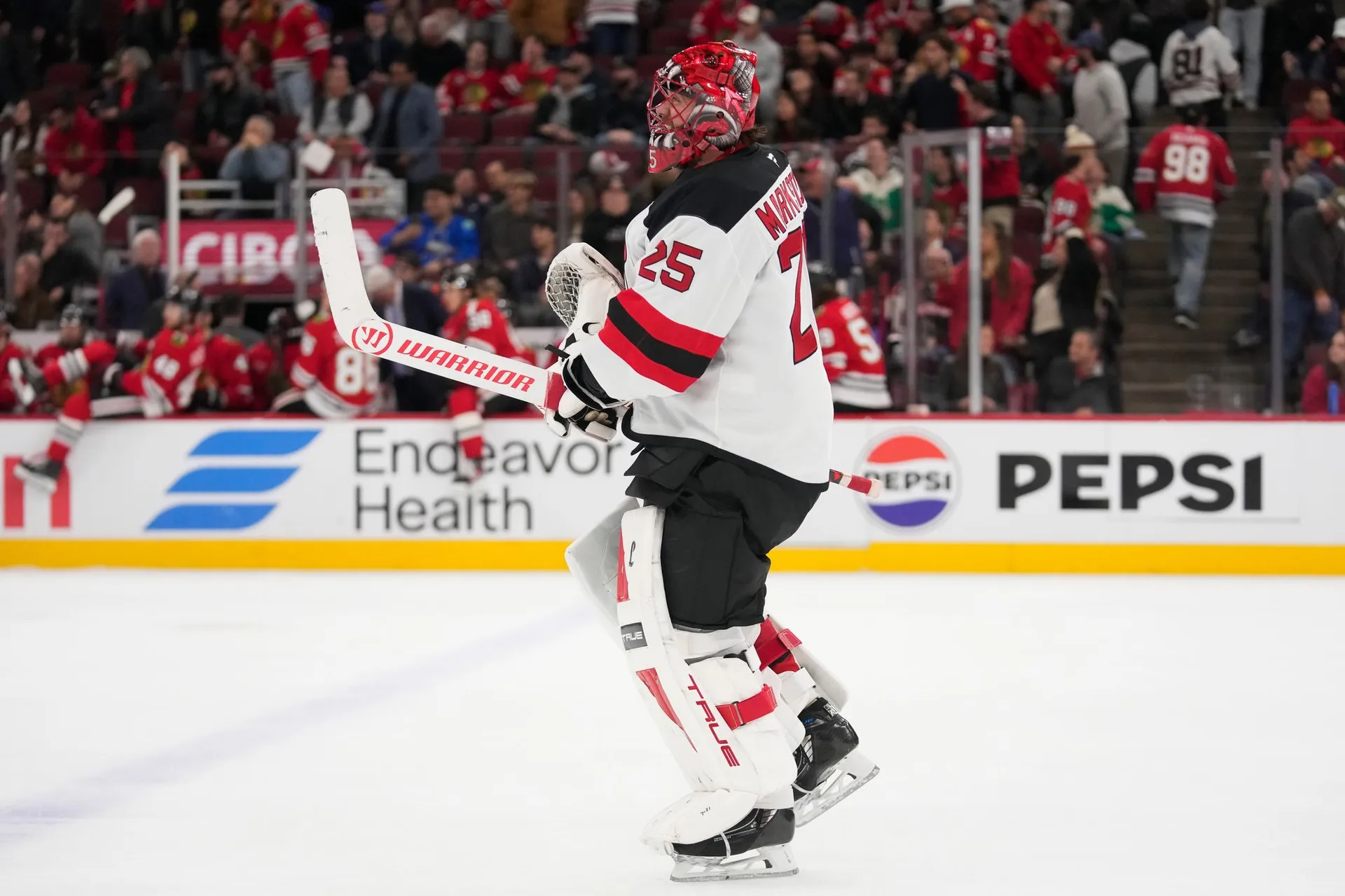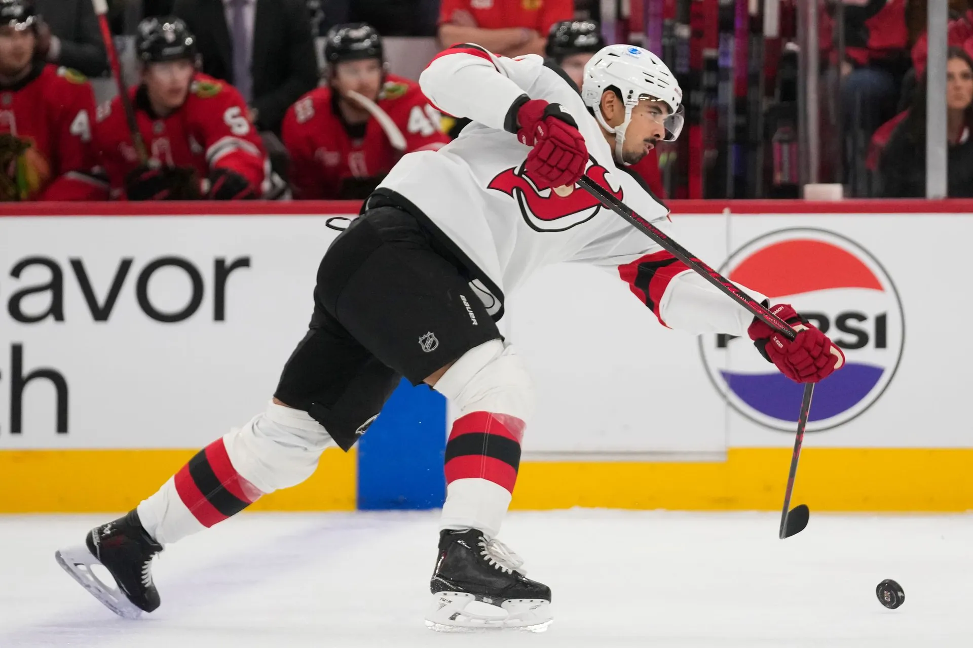 Obranca New Jersey Devils sa trikrát presadil v zápase proti Chicago Blackhawks, "diabli" uspeli 4:3 po predĺžení.