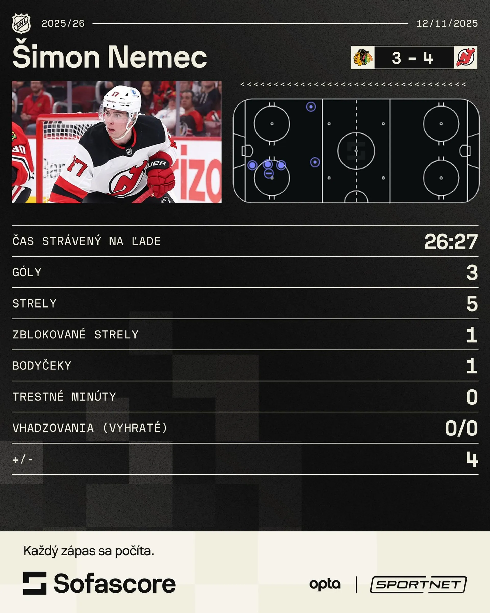 Ústrednou postavou zápasu bol práve Nemec. Pozrite si všetky jeho góly v zápase Chicago Blackhawks - New Jersey Devils.