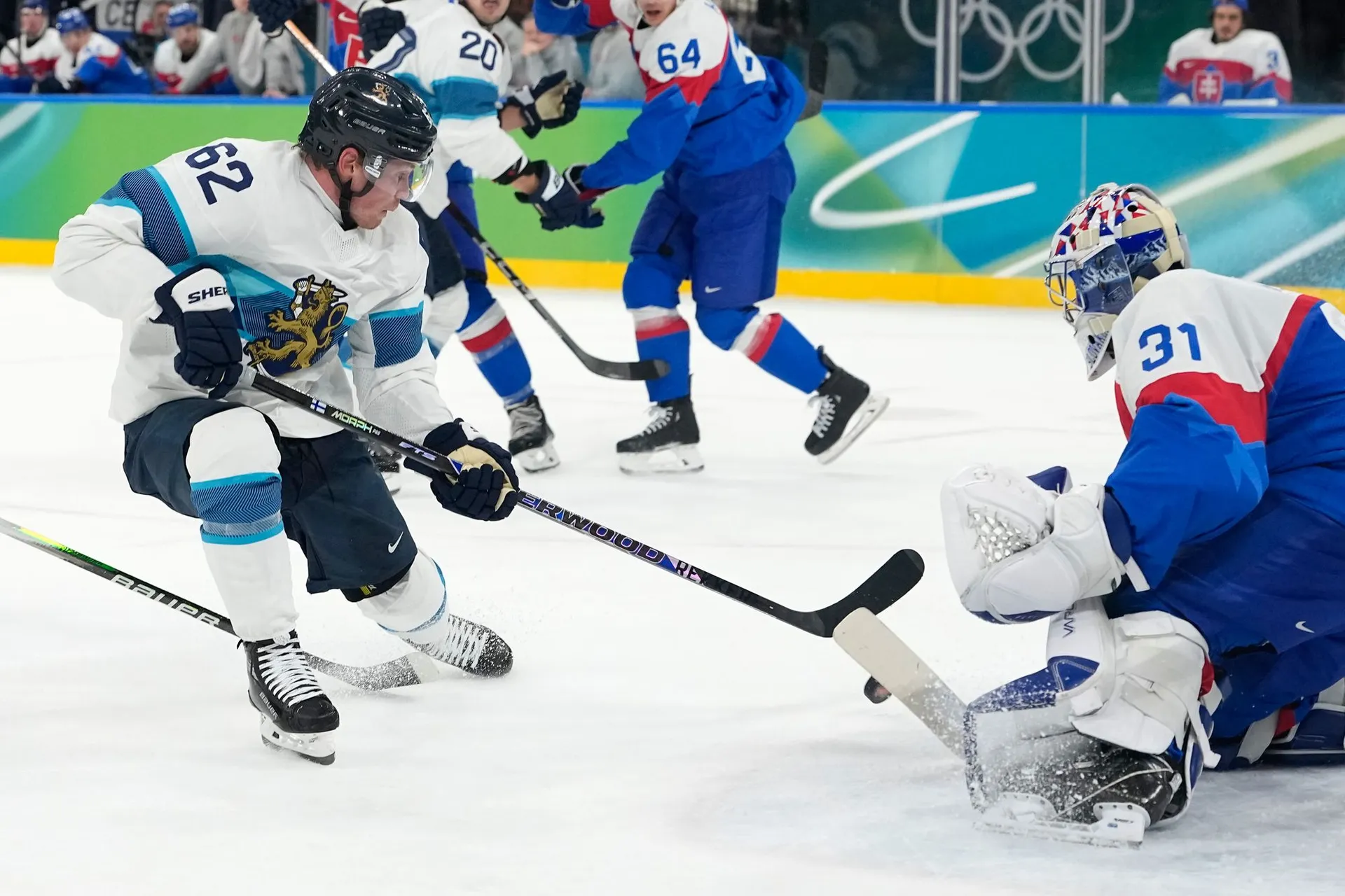 Už o 42 sekúnd neskôr Fíni zvýšili už na 4:1. Okuliarove a Gernátove pošmyknutie využil nekompromisnou strelou Kakko.