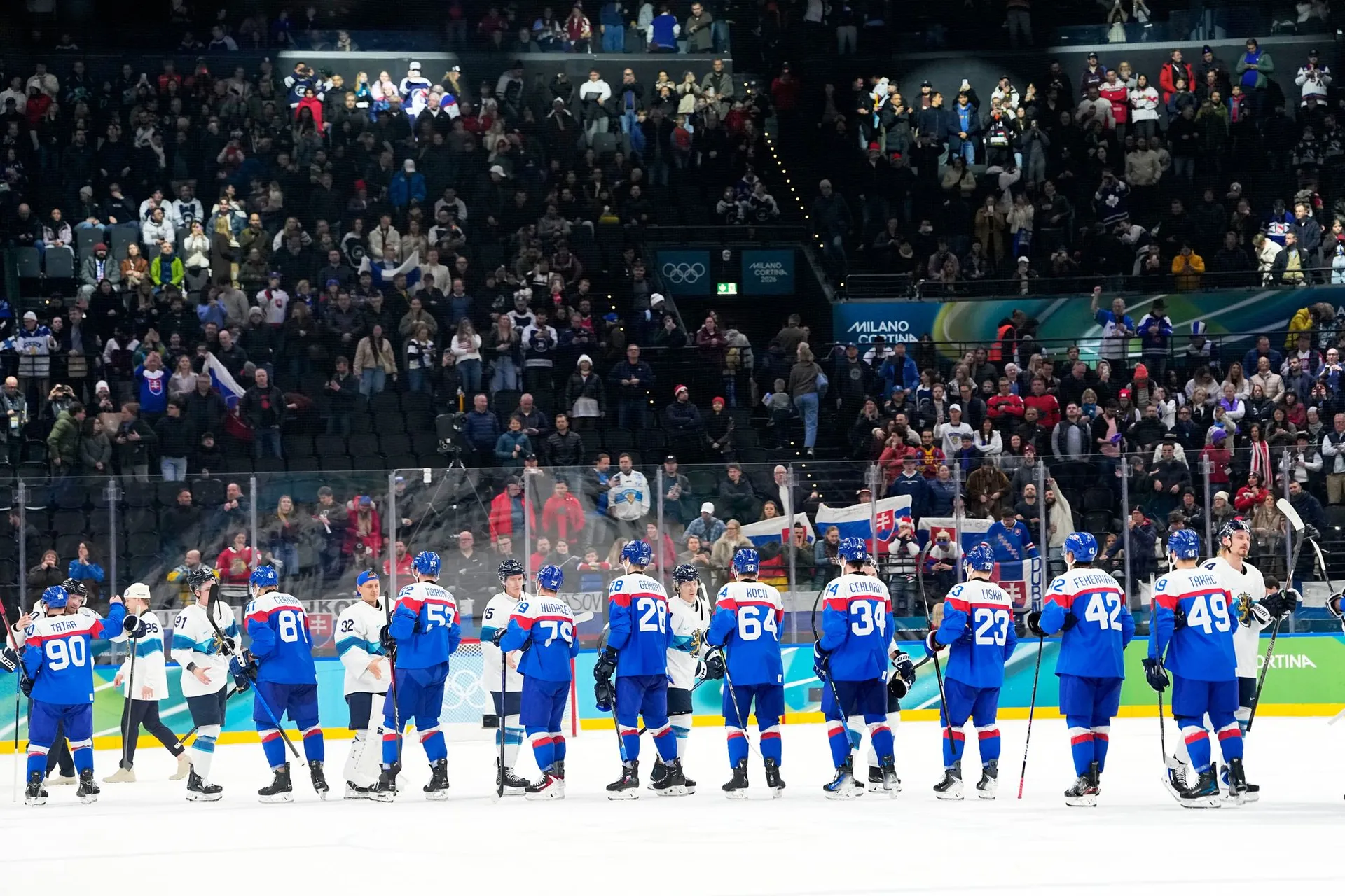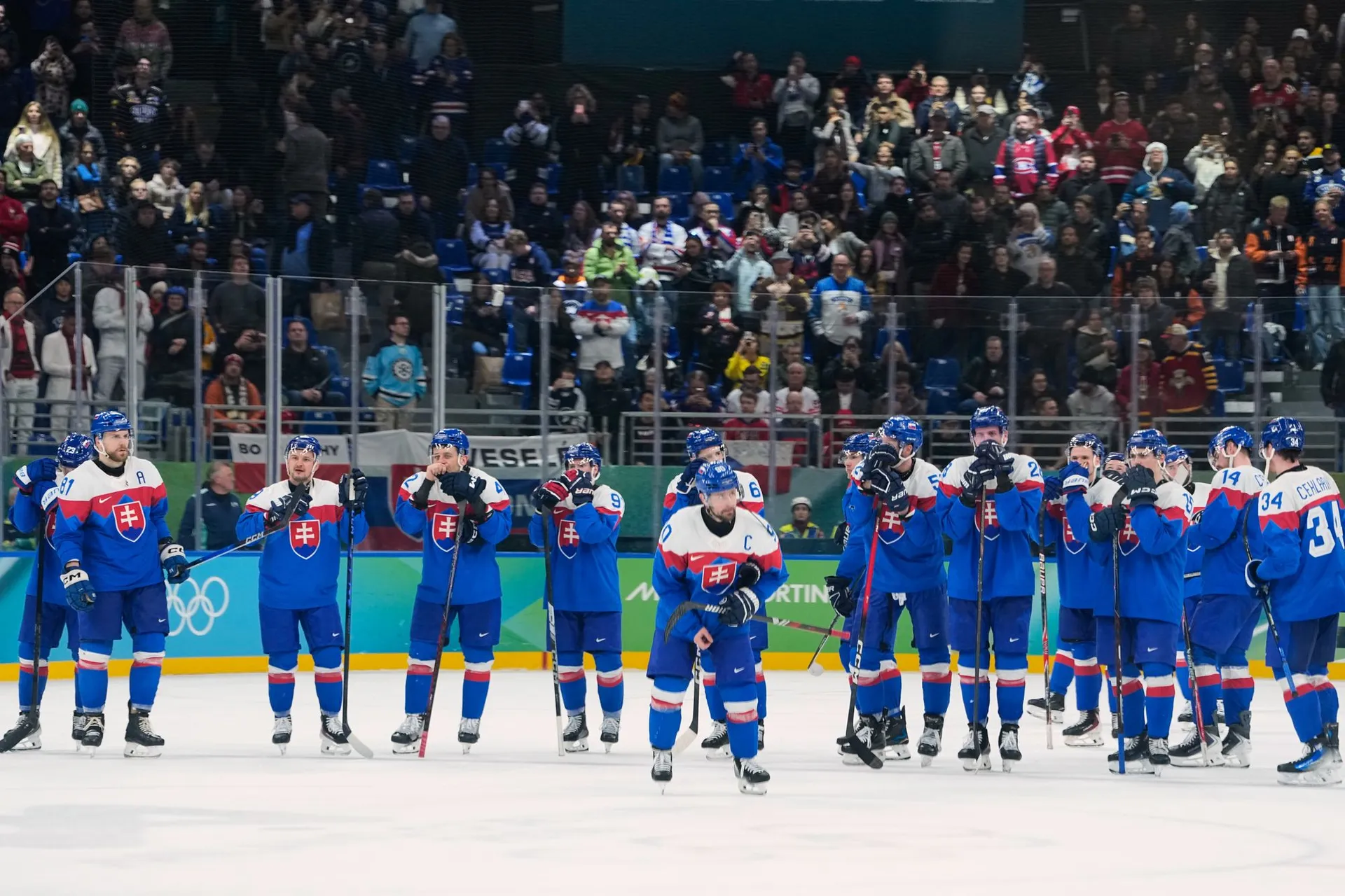 Slováci na konci korčuľovali okolo ľadu a so zdvihnutými hokejkami ďakovali fanúšikom, ktorí ich počas celého turnaja neúnavne podporovali.