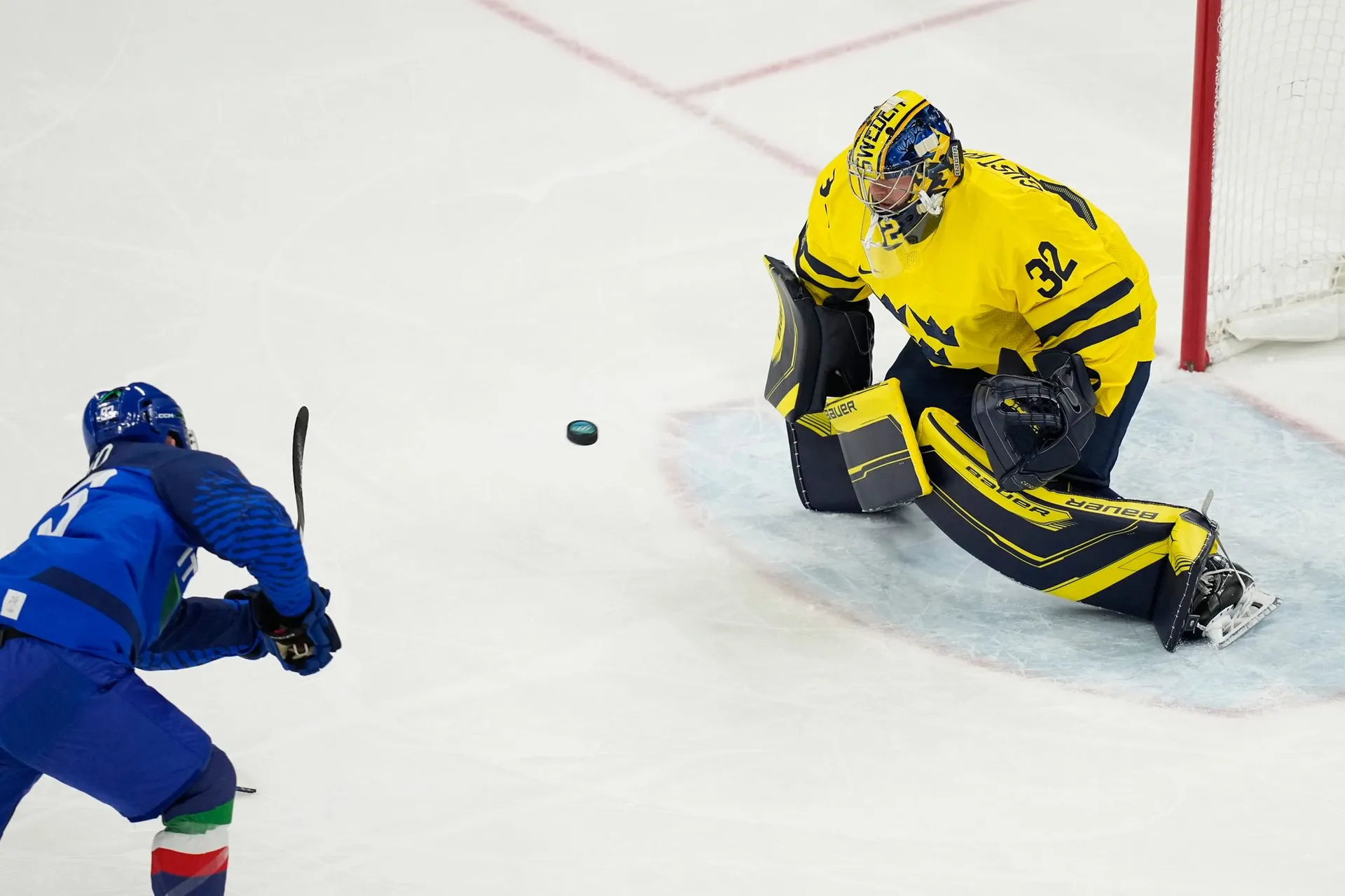 Veľkou prekážkou bol pre nich brankár Talianov Clara, ktorý zneškodnil viaceré vyložené šance. Pomer striel po prvej tretine bol 27:3.