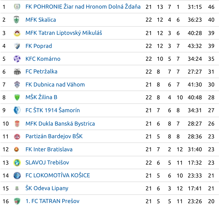 Poprad: Knurovský – Maťaš (76. Pajer), Hric, Horváth, Zekucia, Zošák, Šesták, Jančo (80. Holiš), Kukoľ (71. Streňo), Acosta. Tréner: Marek Petruš.