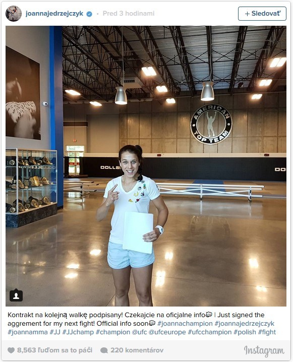 Joanna Jerdzejczyk (12-0 MMA, 6-0 UFC) môže v poradí štvrtý krát obhajovať svoj opasok, tento krát proti krajanke Karoline Kowalkiewicz (10-0 MMA, 3-0 UFC). Karolina vyzývala Joannu od jej vôbec prvej výhry v UFC. Mali by sme tak unikátnu šancu sledovať čisto európsky zápas o titul a nie hoci aký, ale dvoch neporazených zápasničiek. To sme mali v minulosti šancu vidieť len v zápasoch Lyoto Machida vs. Rashad Evans a Ronda Rousey vs. Holly Holm. UFC ešte zápas oficiálne neohlásilo, keď sa tak stane budeme vás hneď informovať.