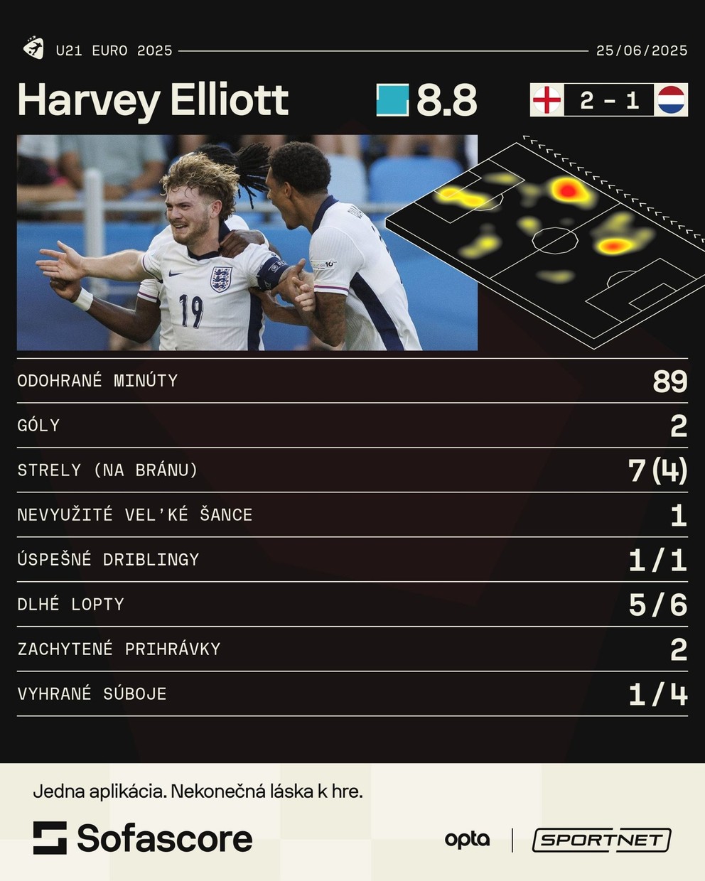 Zobral to na seba a perfektne sa individuálne presadil. Rozbehol sa s loptou a ani jeden zo štyroch protihráčov ho nedokázal zastaviť. Naopak, otvorili mu koridor. Elliott dal v 86. minúte rozhodujúci gól a poslal Anglicko do finále.