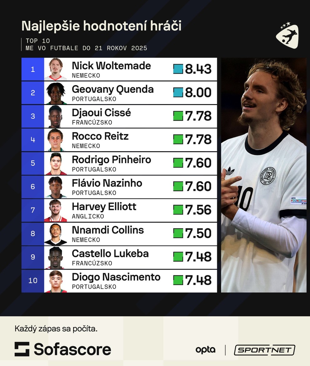 Nemcov ťahá vysoký útočník Nick Woltemade. So šiestimi gólmi je najlepším strelcom turnaja a tiež hlavný kandidát na zisk trofeje pre najlepšieho hráča šampionátu.