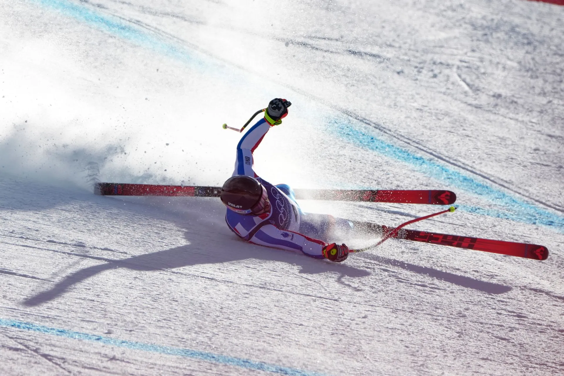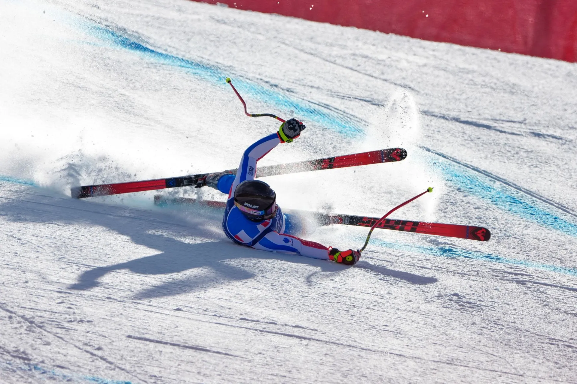 Maxence Muzaton nepredviedol ideálnu jazdu a tesne pred cieľom dokonca spadol a zjazd nedokončí. Francúz už je na svojich nohách, je v poriadku a došiel do cieľa.