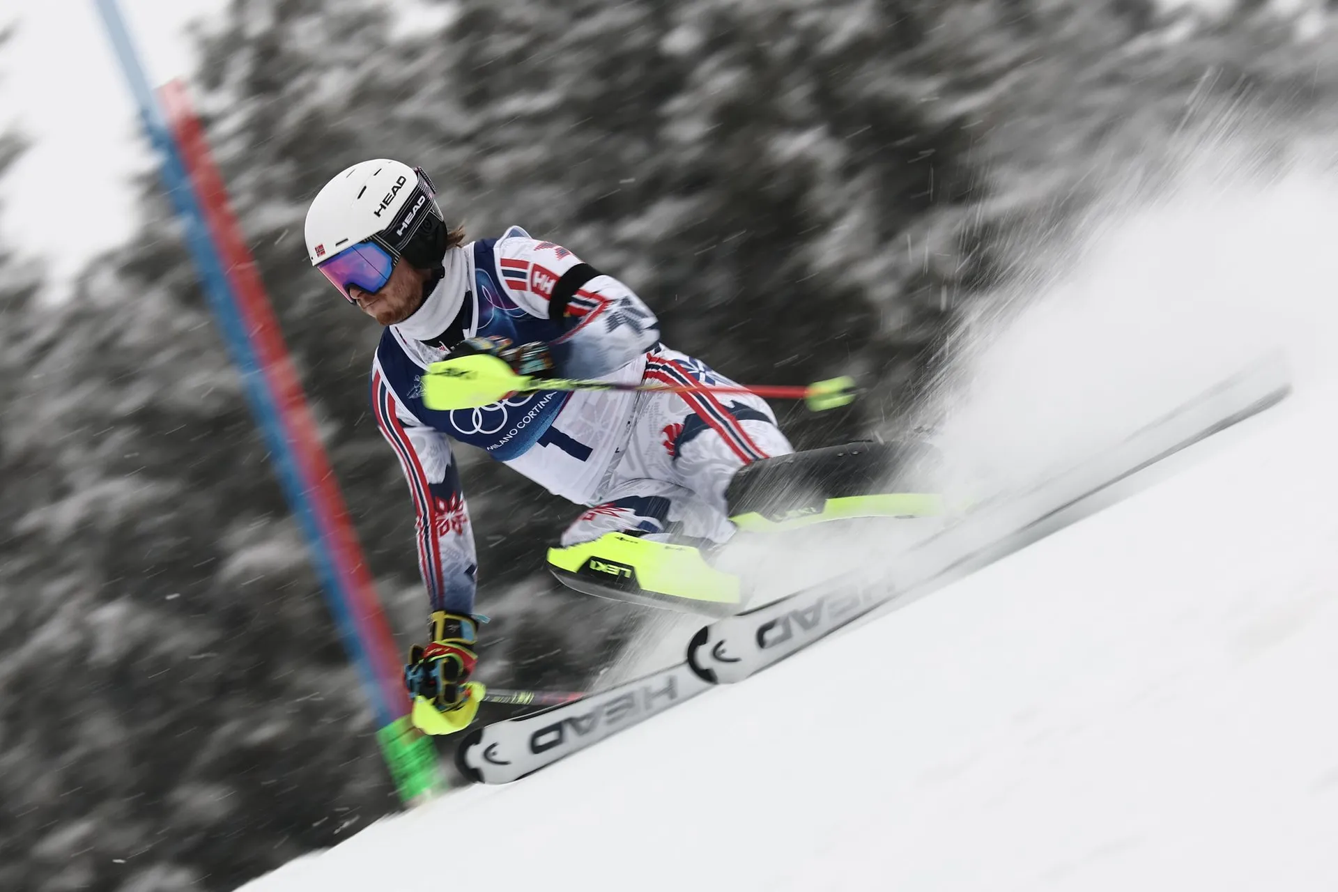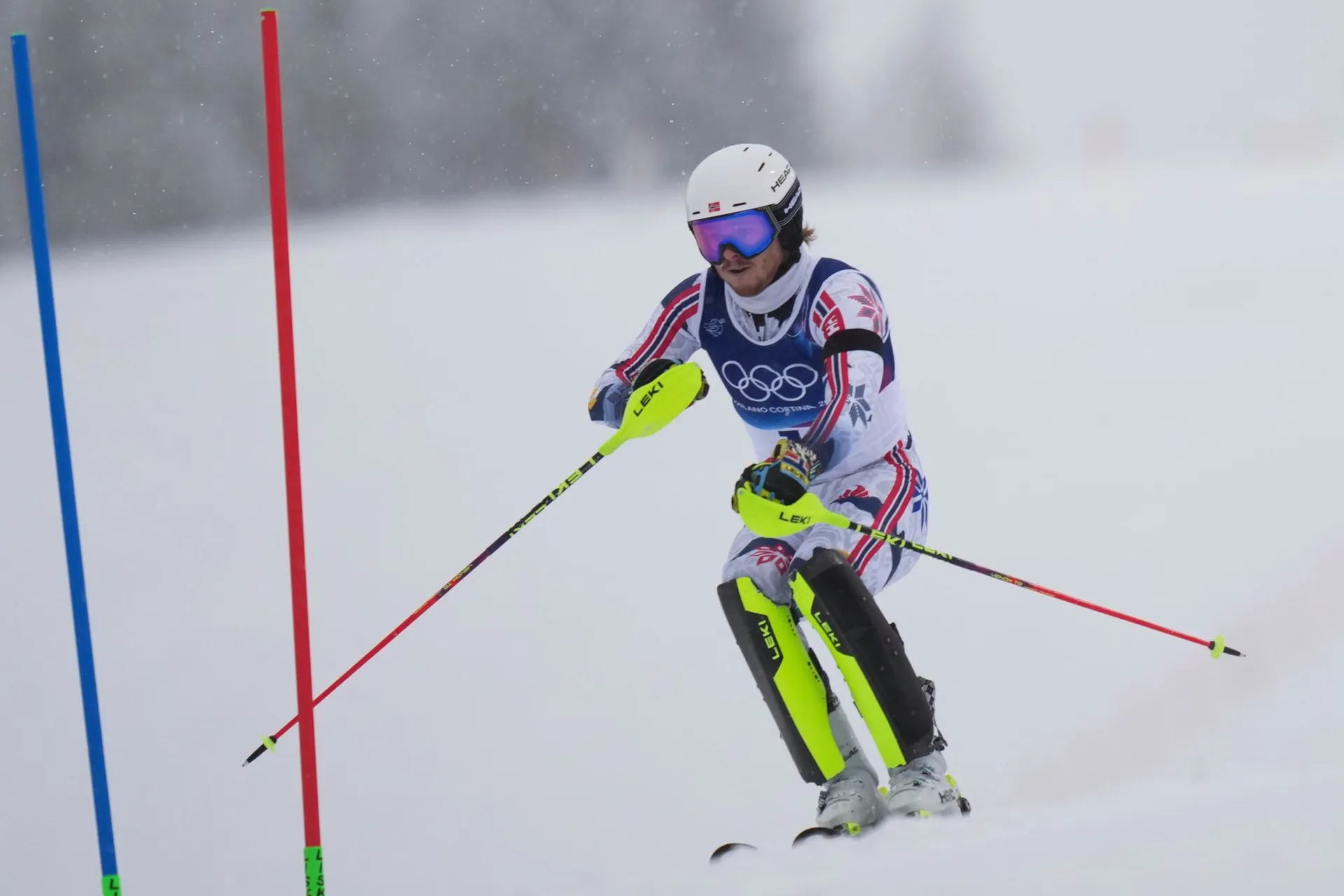 Nórsky lyžiar Alte Lie McGrath je po prvom kole lídrom slalomu na zimných olympijských hrách 2026.