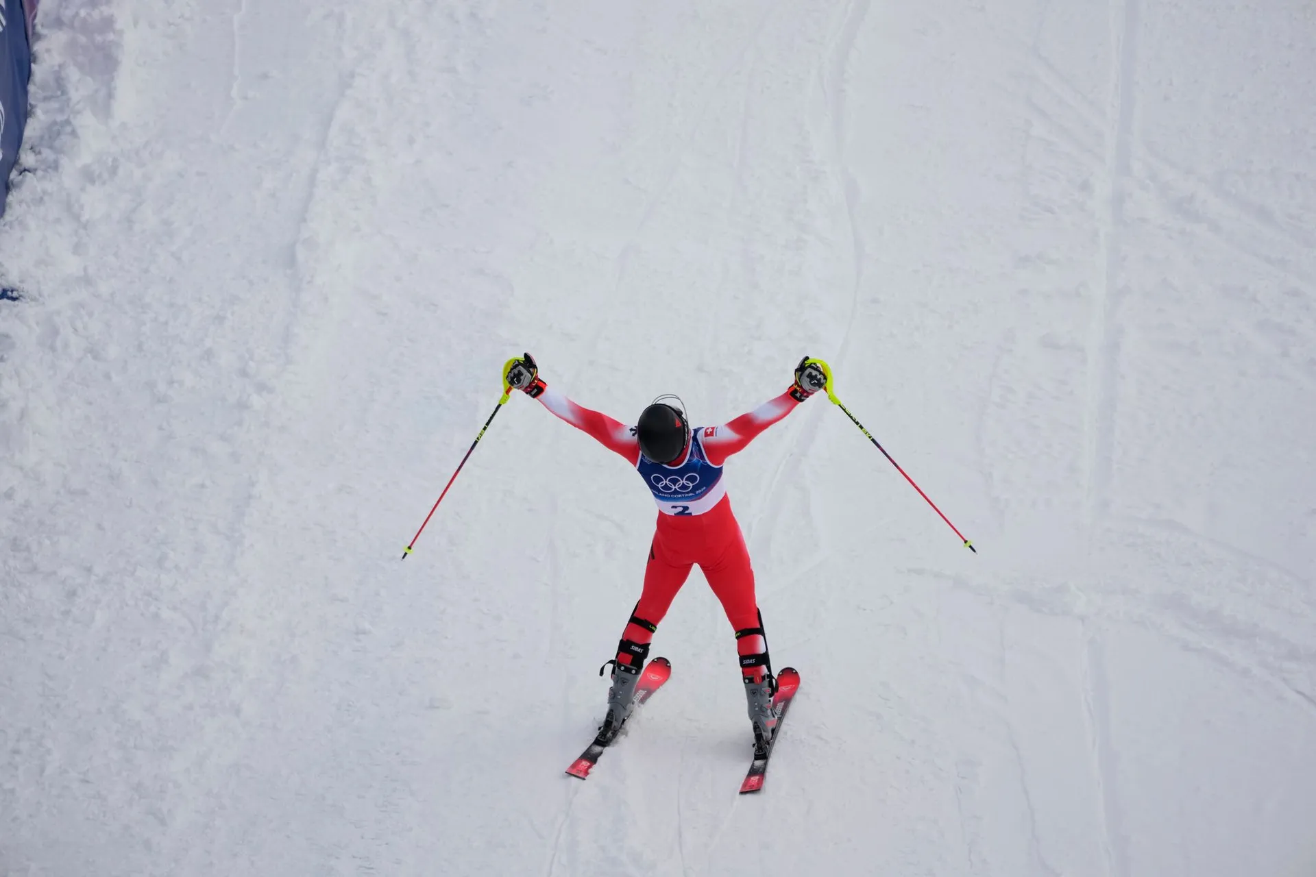 Brazílsky reprezentant bol na prvých dvoch medzičasoch najrýchlejší, ale potom mu ušla vnútorná lyže a skončil na boku.