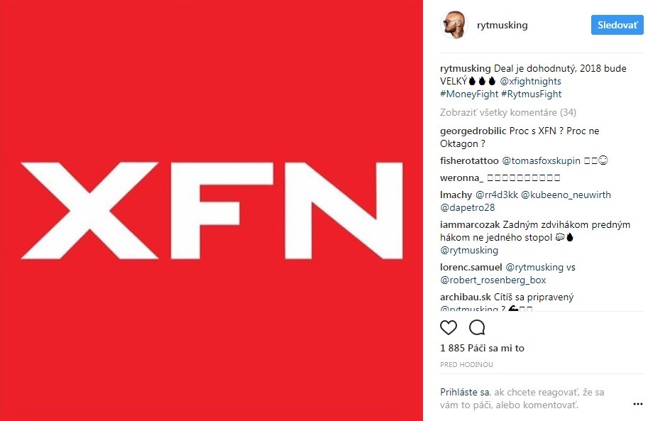 Rytmus dnes na Instagram zavesil fotografiu loga organizácie XFN s popisom ´Deal je dohodnutý, 2018 bude VELKÝ @xfightnights #MoneyFight #RytmusFight´. A čo na to XFN? Hlavní predstavitelia si nechávajú podrobnosti zatiaľ pre seba, ale odkazujú, že sa chystá niečo veľké.