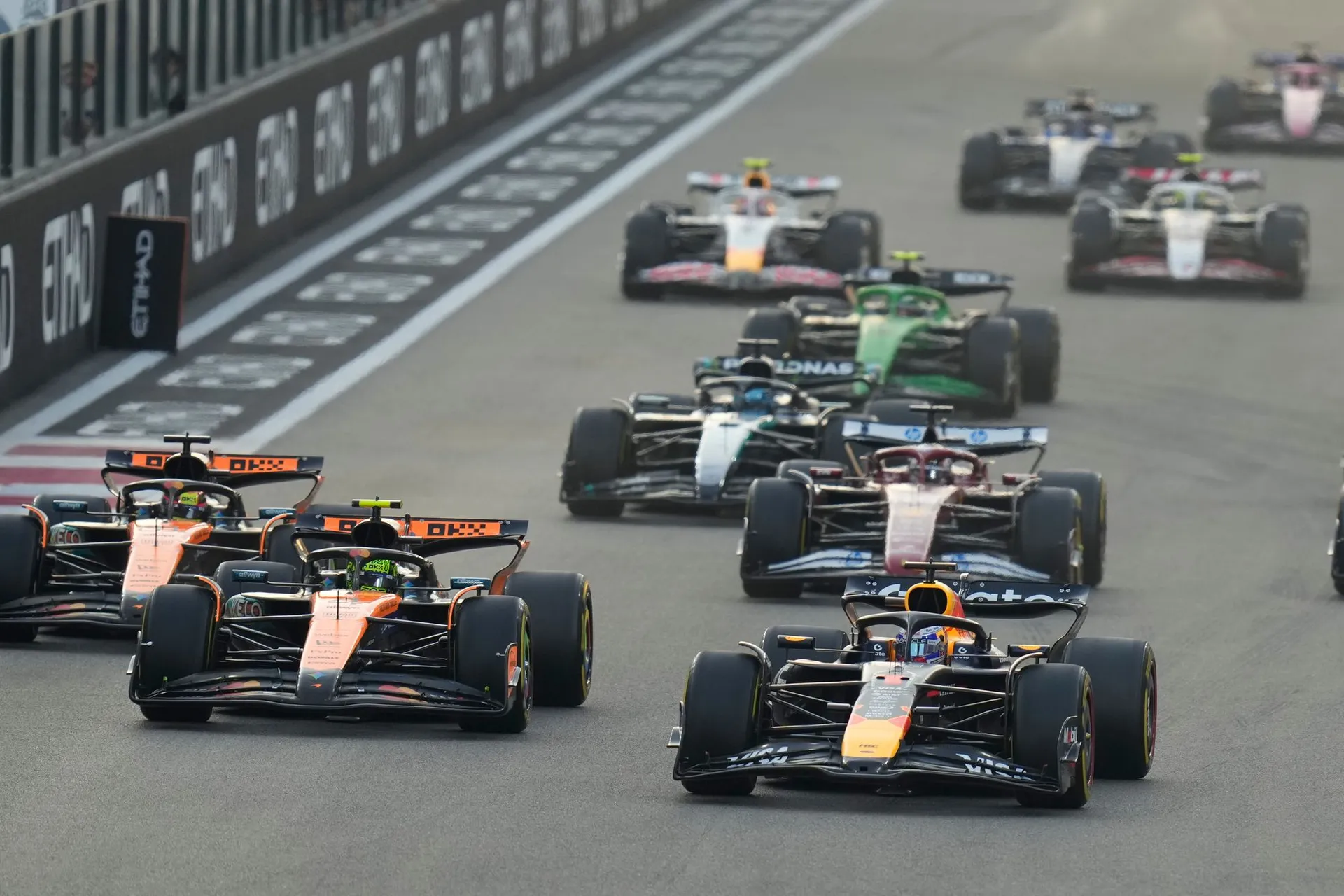 Z pole position, ale vyštartuje Max Verstappen, ktorý dnes môže získať už svoj piaty majstrovský titul. Na to, ale bude potrebovať určitú zhodu okolností. Hneď za ním vyštartuje Lando Norris a z tretieho miesta Oscar Piastri.