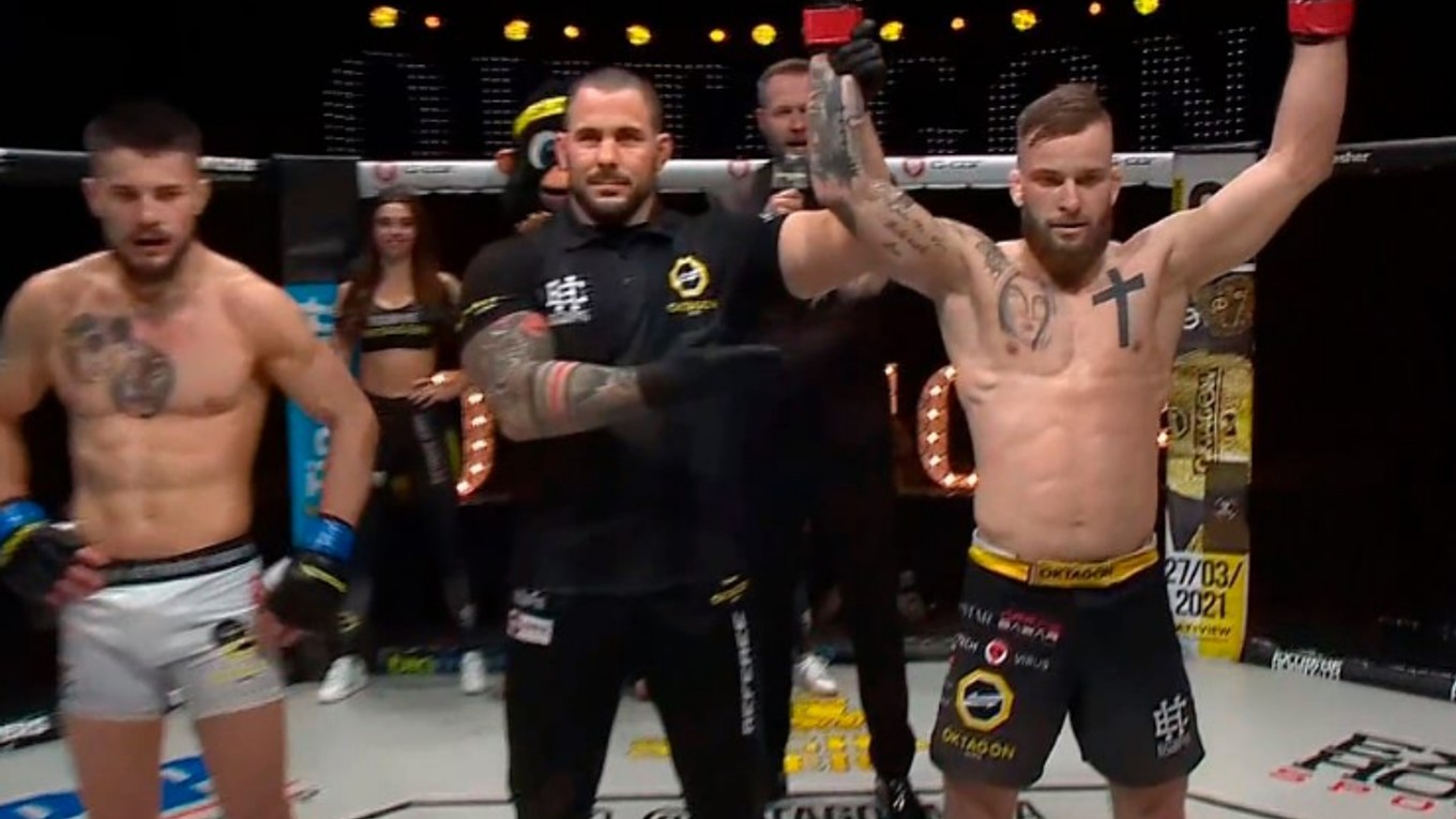 Michal Konrád poráža Igora Lukačoviča v prvom kole na submission (Rear-Naked Choke).