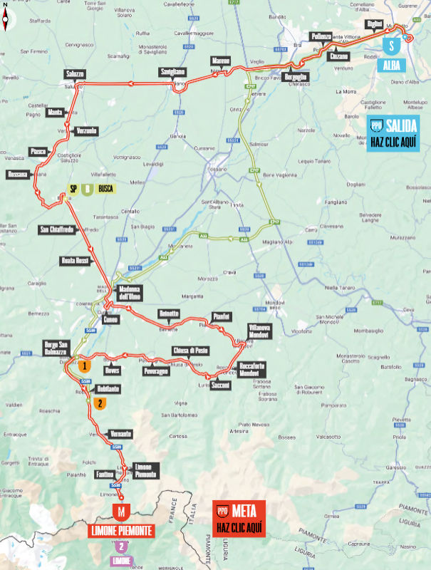 Po skvělém výkonu týmu Alpecin – Deceuninck a jejich sprintera Jaspera Philipsena, který se oblékl do červeného trikotu, peloton pokračuje i v druhé etapě Vuelty na italském území. Vydá se z Alby a po necelých 160 kilometrech bude finišovat takřka u francouzských hranic v obci Limone Piemonte. Zpestřením bude na 67. kilometru sprinterská prémie.