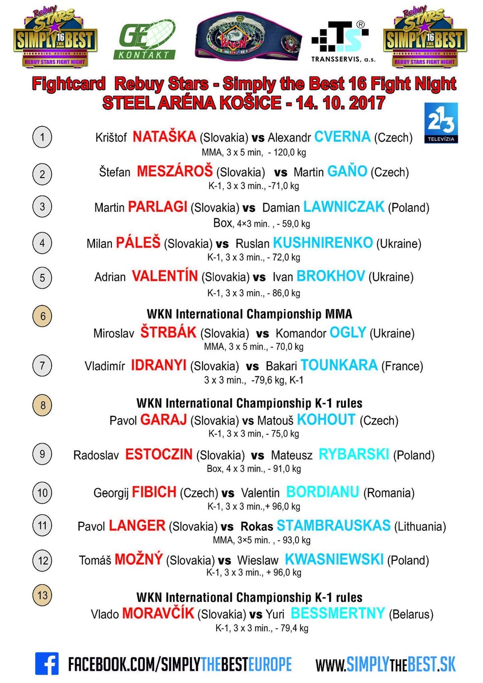 Už budúcu sobotu sa uskutoční jedno z najväčších podujatí bojových športov na Slovensku, Rebuy Stars – Simply the Best 16 Fight Night. Turnaj bude hostiť košická Steel Aréne a na starosti ju má Lukáš Body a Petr Lamač.