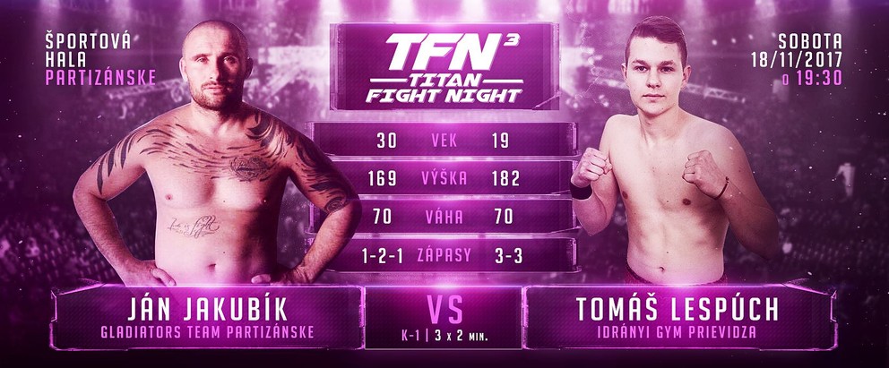 Keďže obaja borci sľubujú, že si nič nedarujú, čakaj poriadnu ´mastenicu´. Jakubíka sme naposledy videli na gala v Trenčíne, kde s oveľa skúsenejším bojovníkom Martinom Čermákom dokázal držať krok až do 3. kola, keď ho súper ukončil naskočeným kolenom. Pred domácim publikom sa bude chcieť určite vytiahnuť.