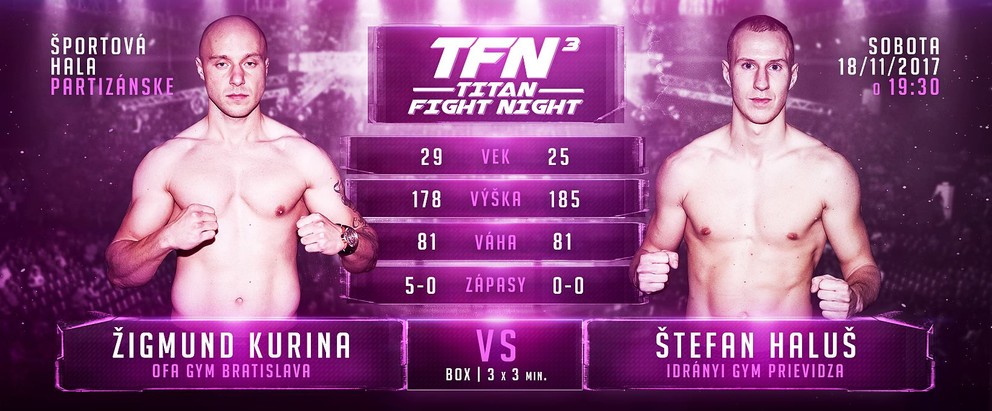 Aj keď má Haluš v boxe premiéru, nie je to žiadny začiatočník. Jeho zápas sme mohli vidieť i v minulom roku na TFN, keď v K1 bojoval s Pipom Bezuškom, bývalým majstrom SR v kickboxe, kde vo veľmi peknom zápase prehral na body. Kurinu sme už tiež mohli vidieť na TFN v zápase s Čulákom, ktorý po súboji začal chudnúť a venovať sa naplno boxu. Kurina mal naposledy zápas večera s Gábrišom v Bratislave.