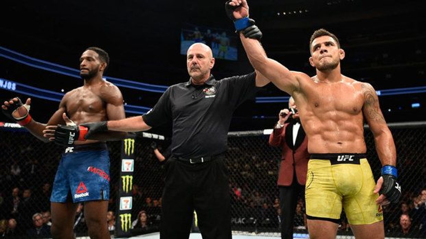 Tento súboj mal nakoniec jednoznačný priebeh, keď sa bývalému šampiónovi ľahkej váhy v úvode podarilo dostať súpera na zem a tam ho v prvom kole ukončiť na arm-triangle. Pre Dos Anjosa sa jednalo o prvú submission výhru od roku 2012. Naopak, Neil Magny bol po druhý raz v priebehu 380 dní ukončený už počas prvej päťminútovky.