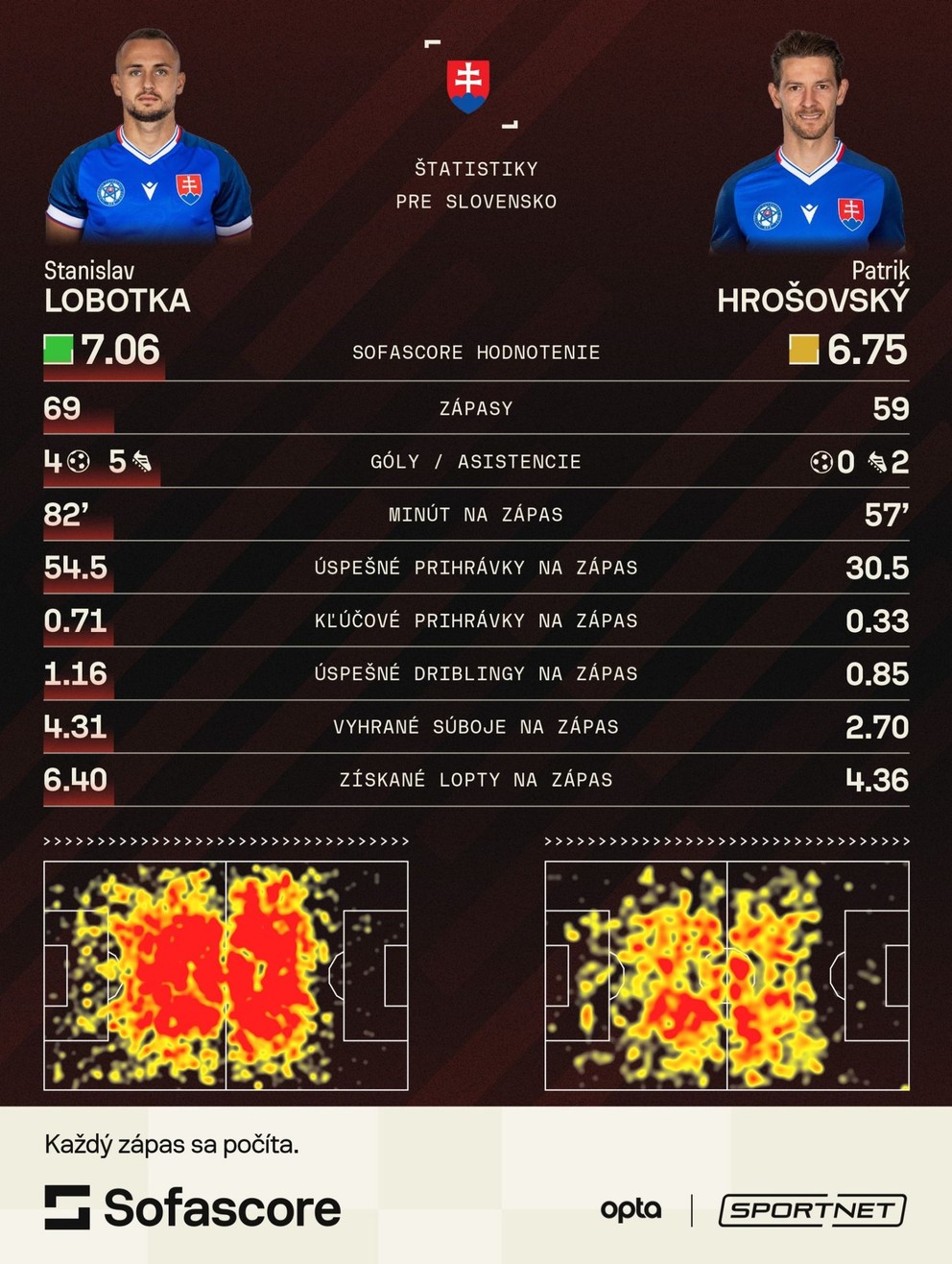 Počet úspešných prihrávok, kľúčových prihrávok, vyhraných súbojoch, získaných lôpt, vyhraných súbojov v priemere na zápas ukazuje jasnú prevahu Lobotku v porovnaní s ostatnými adeptami na jeho post.