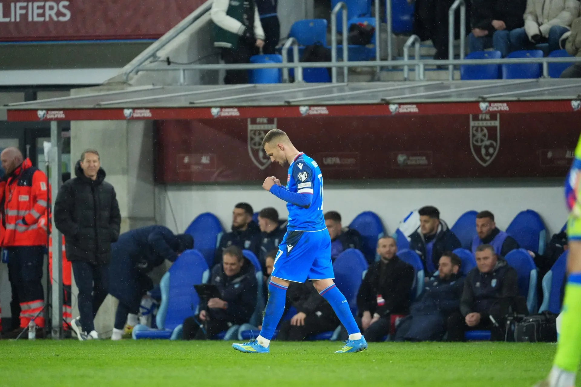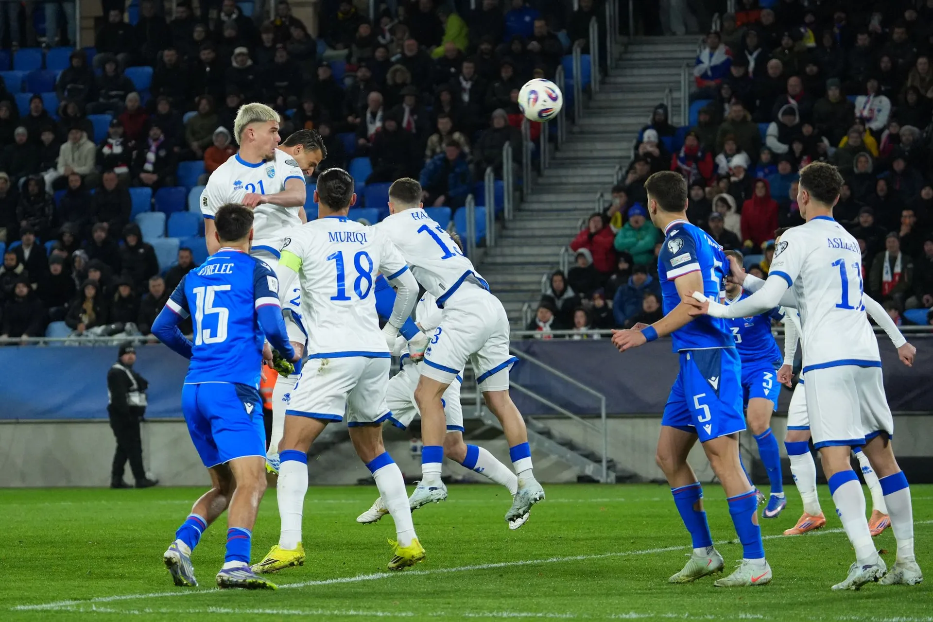 Kosovo poslal prvýkrát v zápase do vedenia Florent Muslija, ktorý prekonal brankára Martina Dúbravku z priameho kopu.