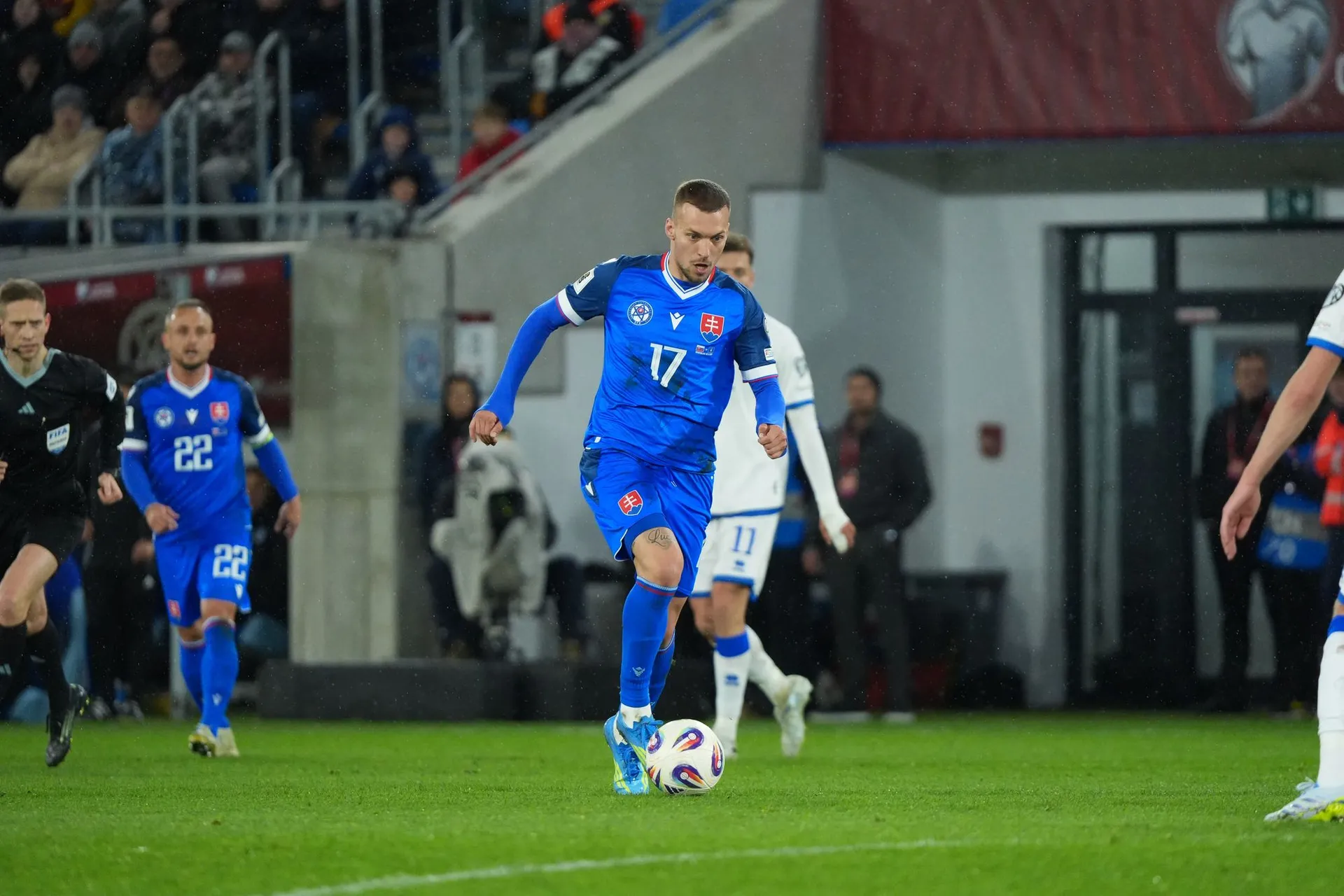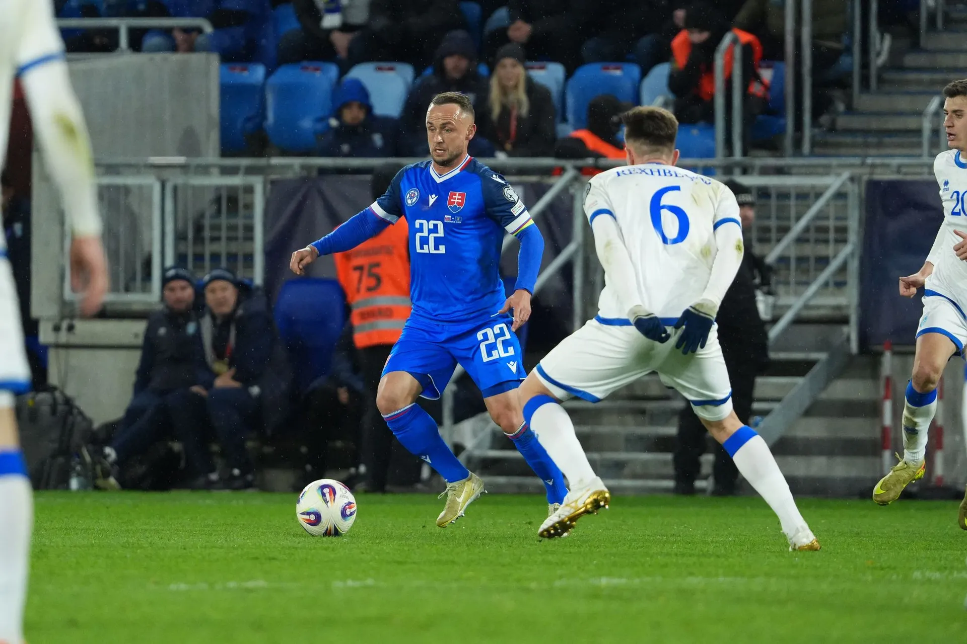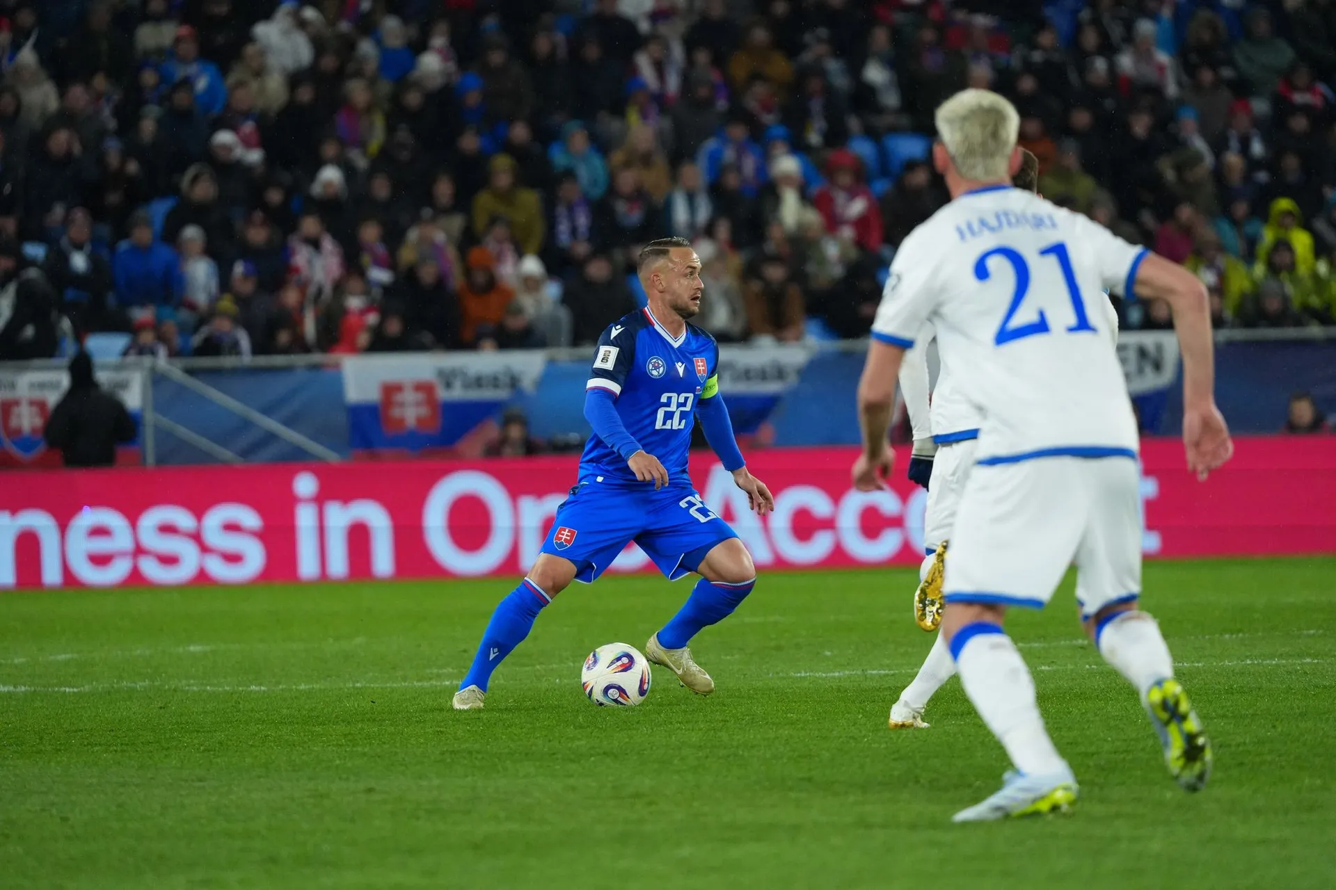 Skóre sa však do polčasovej prestávky menilo ešte raz, keď poslal Slovensko opäť do vedenia Lukáš Haraslín z priameho kopu.