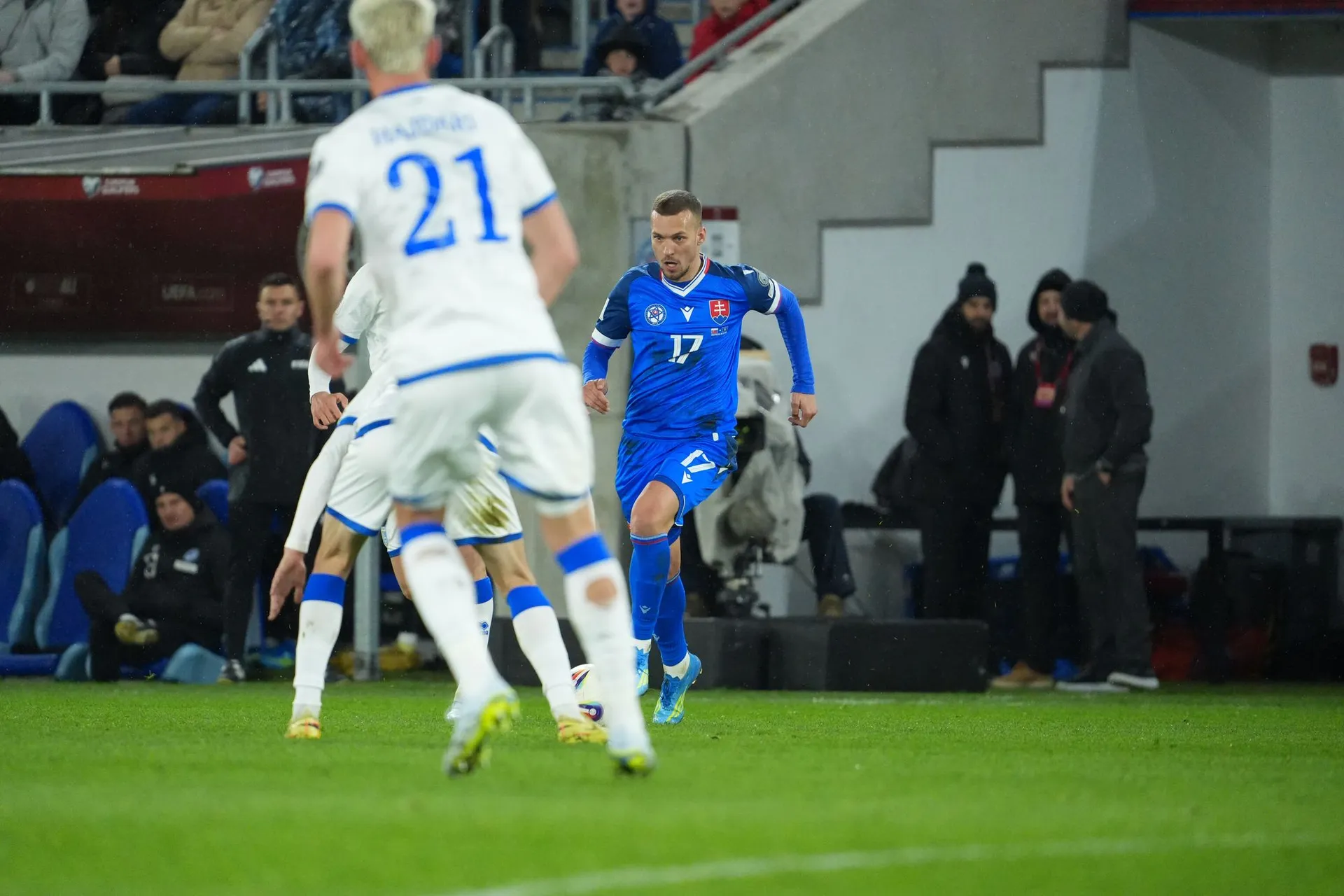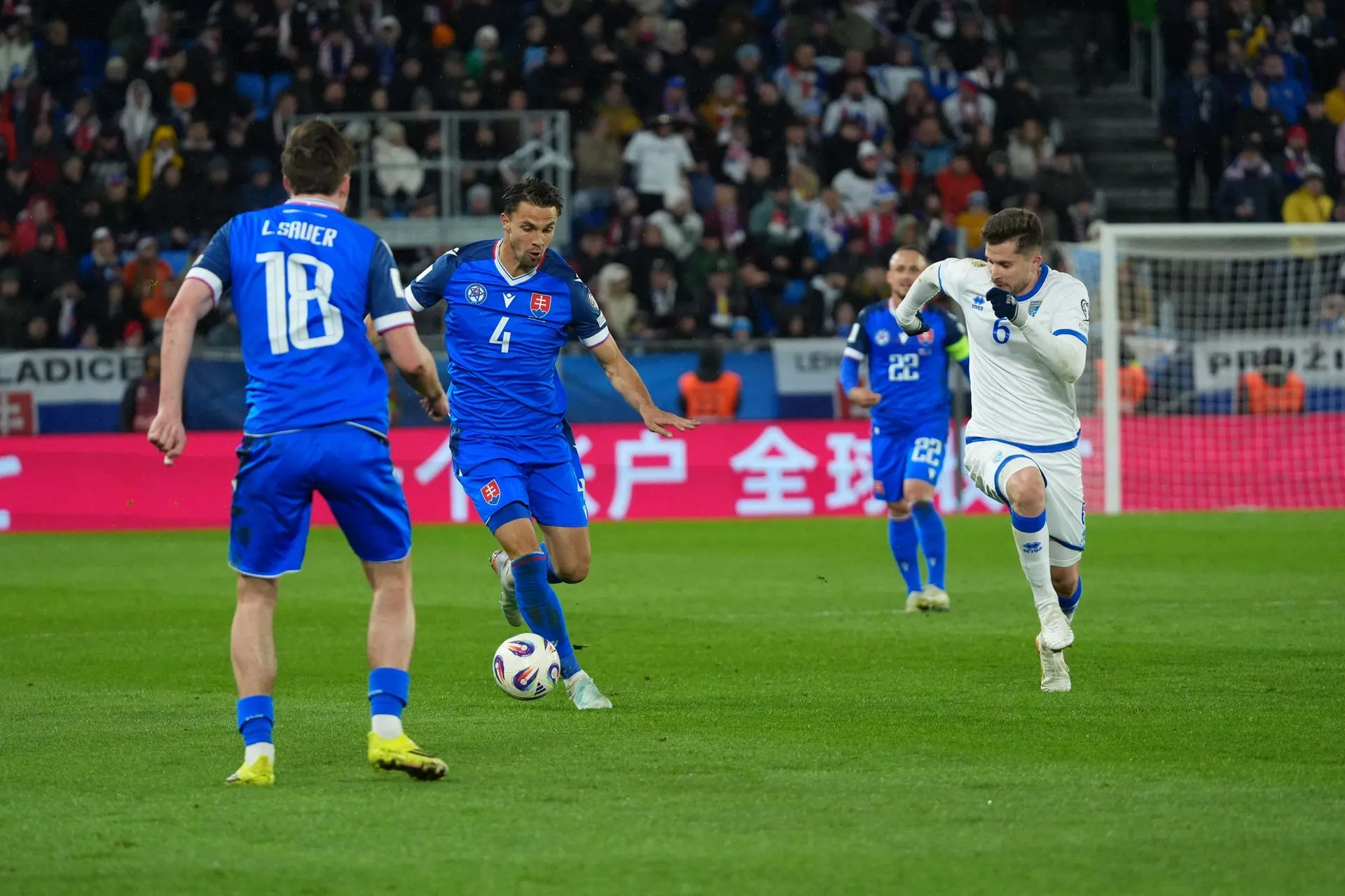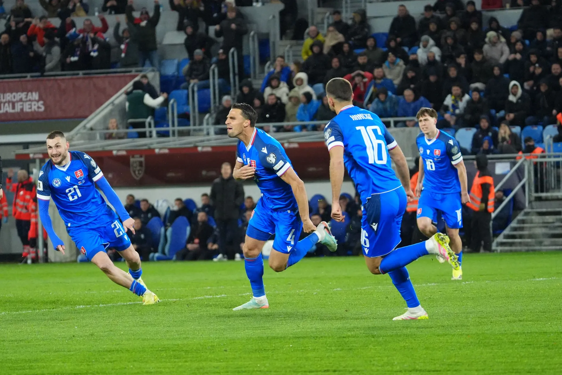 Skóre sa však do polčasovej prestávky menilo ešte raz, keď poslal Slovensko opäť do vedenia Lukáš Haraslín z priameho kopu.