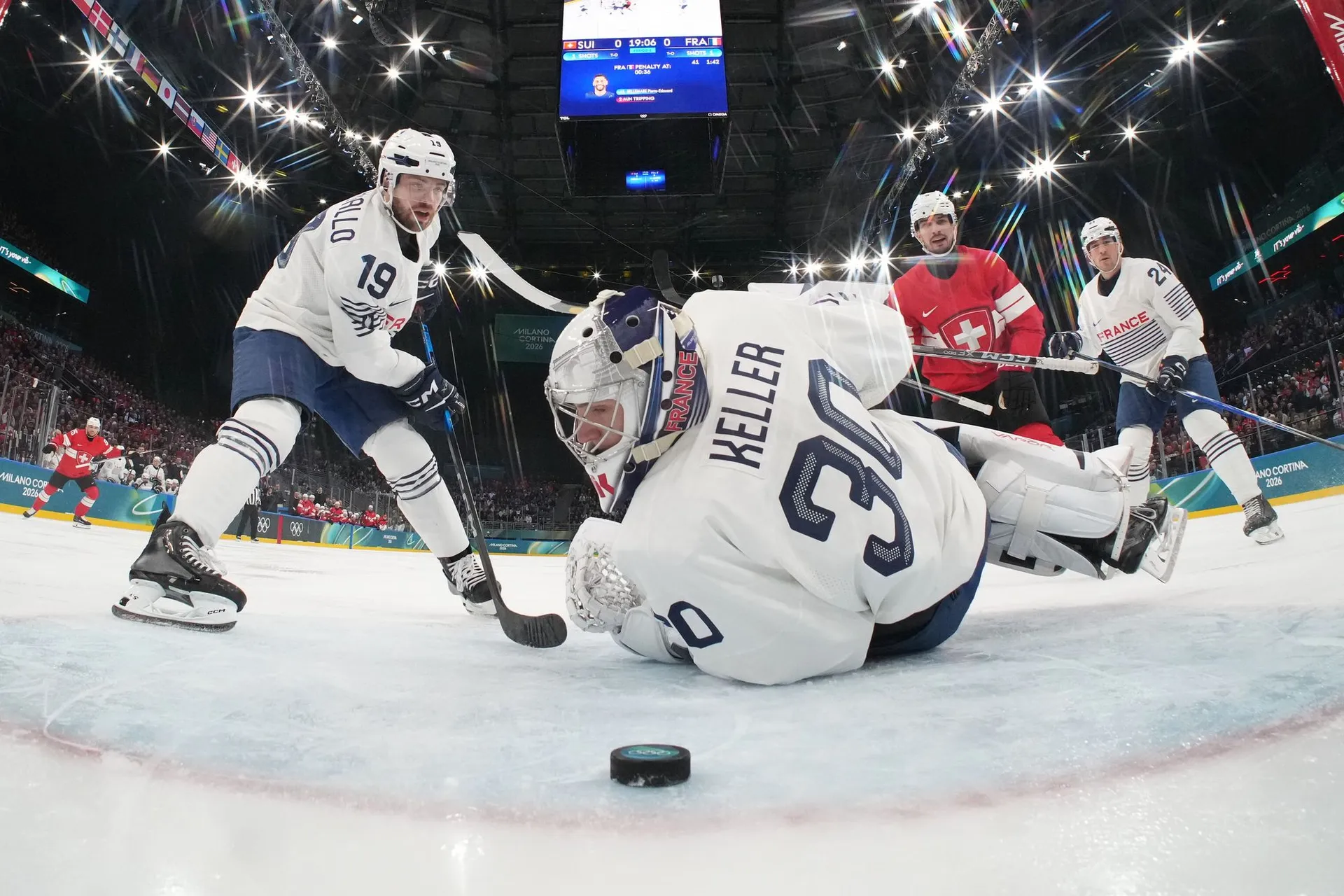 TIMO MEIER sa otočil okolo obrancu a vystrelil na bránku. Keller si následne nešťastne zrazil puk za vlastný chrbát. Pre francúzsky tím smolný moment, keďže práve on ich dnes viackrát podržal.