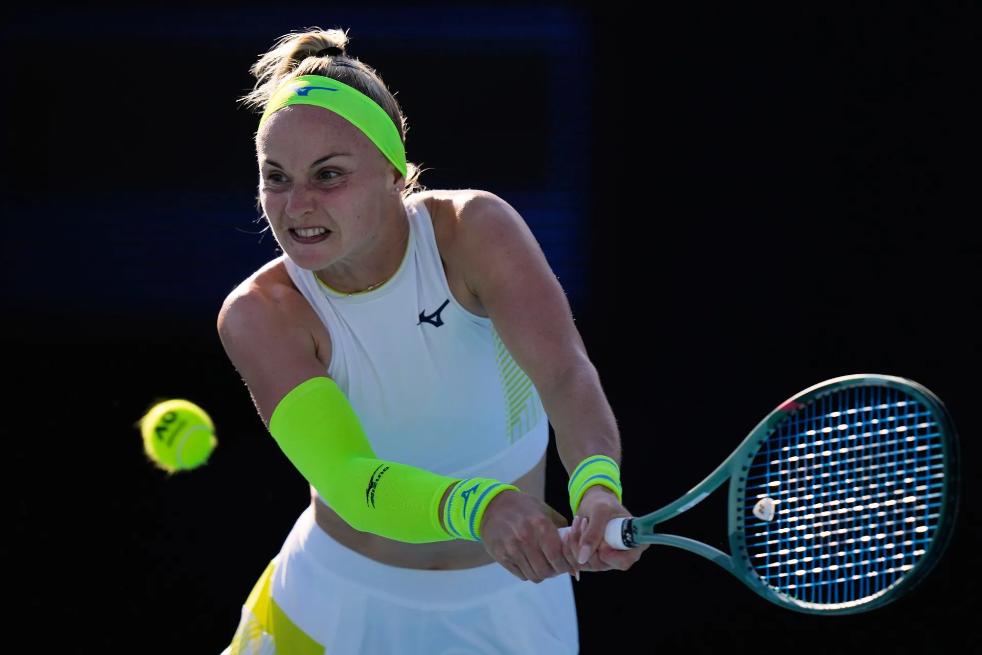 Prichádza horšia chvíľa pre slovenskú tenistku, ktorá smeruje úder iba do siete.