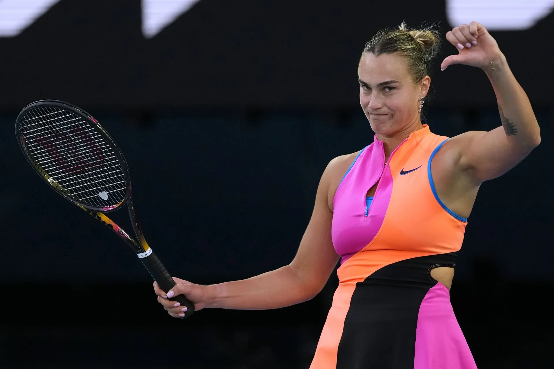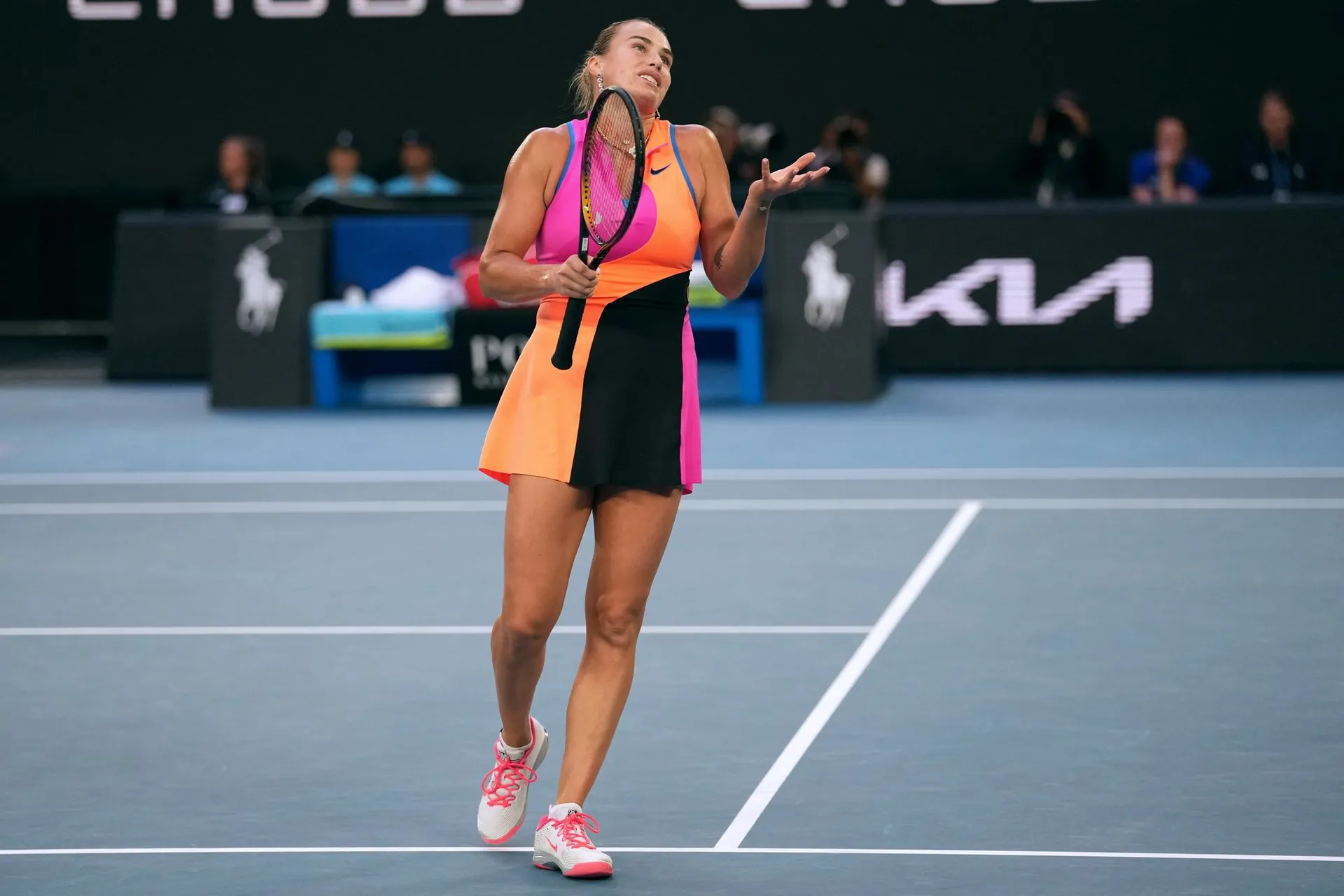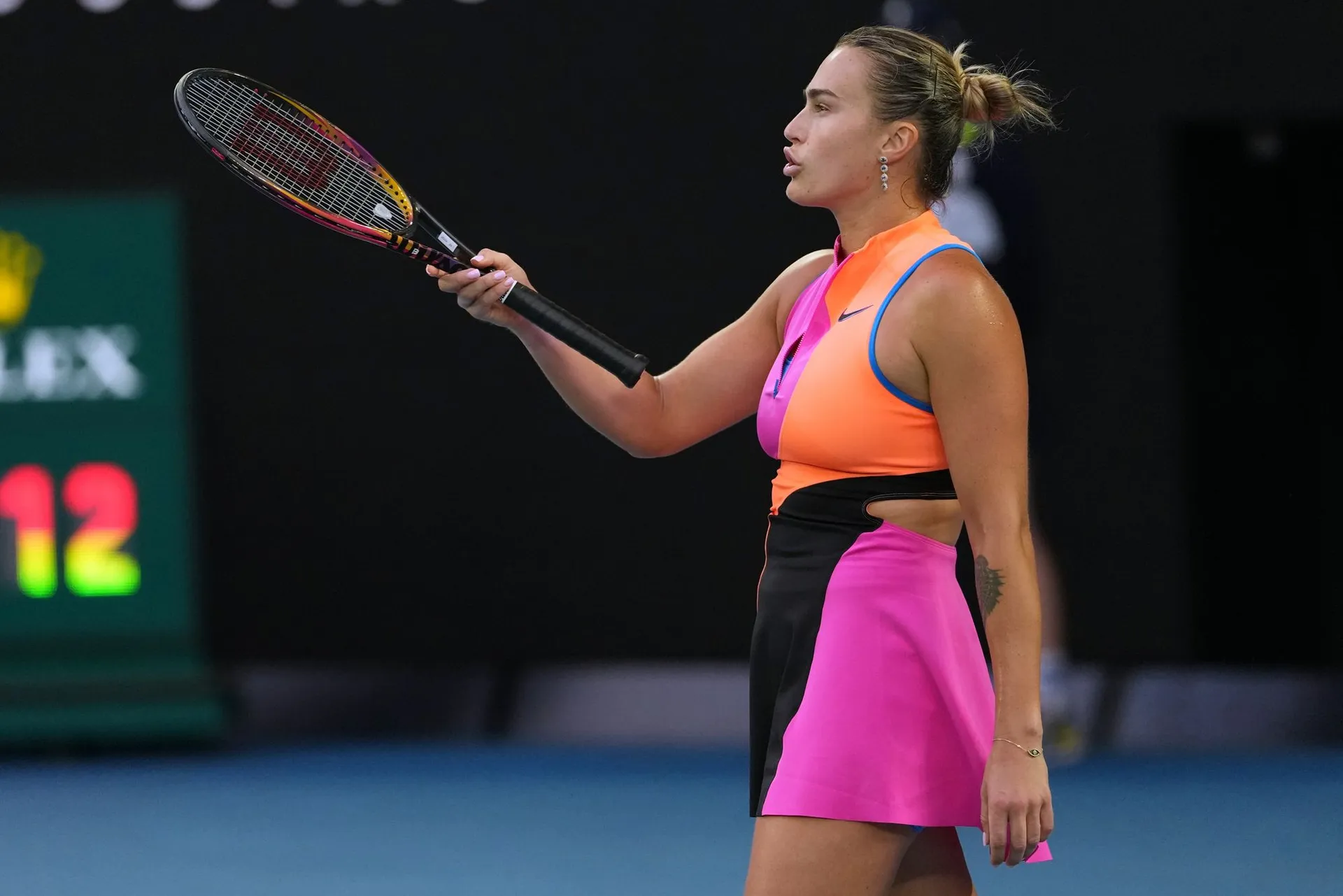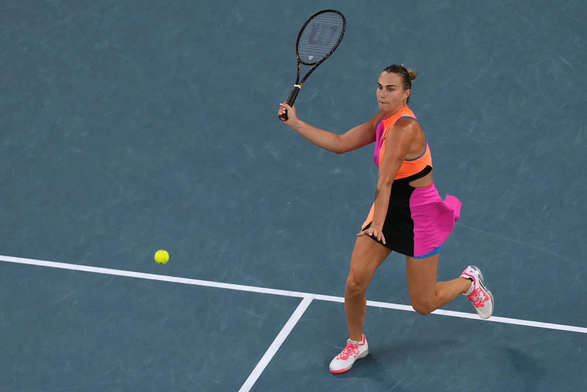 Sabalenkovú nerozhodila ani výmena názorov s rozhodkyňou, ktorá v úvodnom sete prerušila výmenu a pridelila bod jej súperke za nepovolené výkriky počas výmeny.