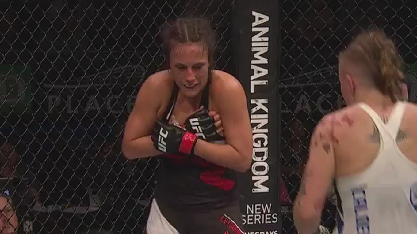 Pravidlá UFC povoľujú kopy na prsia a práve po jednom z takýchto kopov sa Valerie doslova obrátila k rozhodcovi a nikomu nebolo jasné, či ide o naprávanie dielu, alebo o bolestivé KO. Všetky dohady ale vysvetlila na sociálnej sieti.