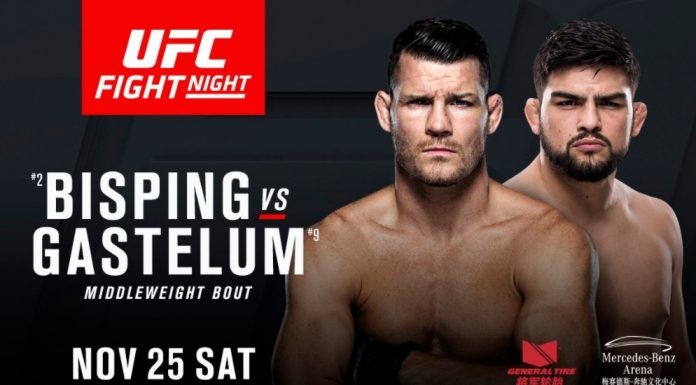 Brit len pred 9 dňami stratil opasok strednej váhy v hlavnom zápase UFC 217, keď ho porazil Georges St-Pierre. Bisping v pozápasových rozhovorch načrtol, že by rád zápasil na marcovom Fight Nighte v Londýne, kde by aj možno ukončil profesionálnu kariéru. ´The Count´ sa však namiesto toho druhýkrát v priebehu troch týždňov objaví v hlavnom zápase podujatia UFC, keď ho tentoraz čaká nebezpečný, stále iba 26-ročný Kelvin Gastelum.