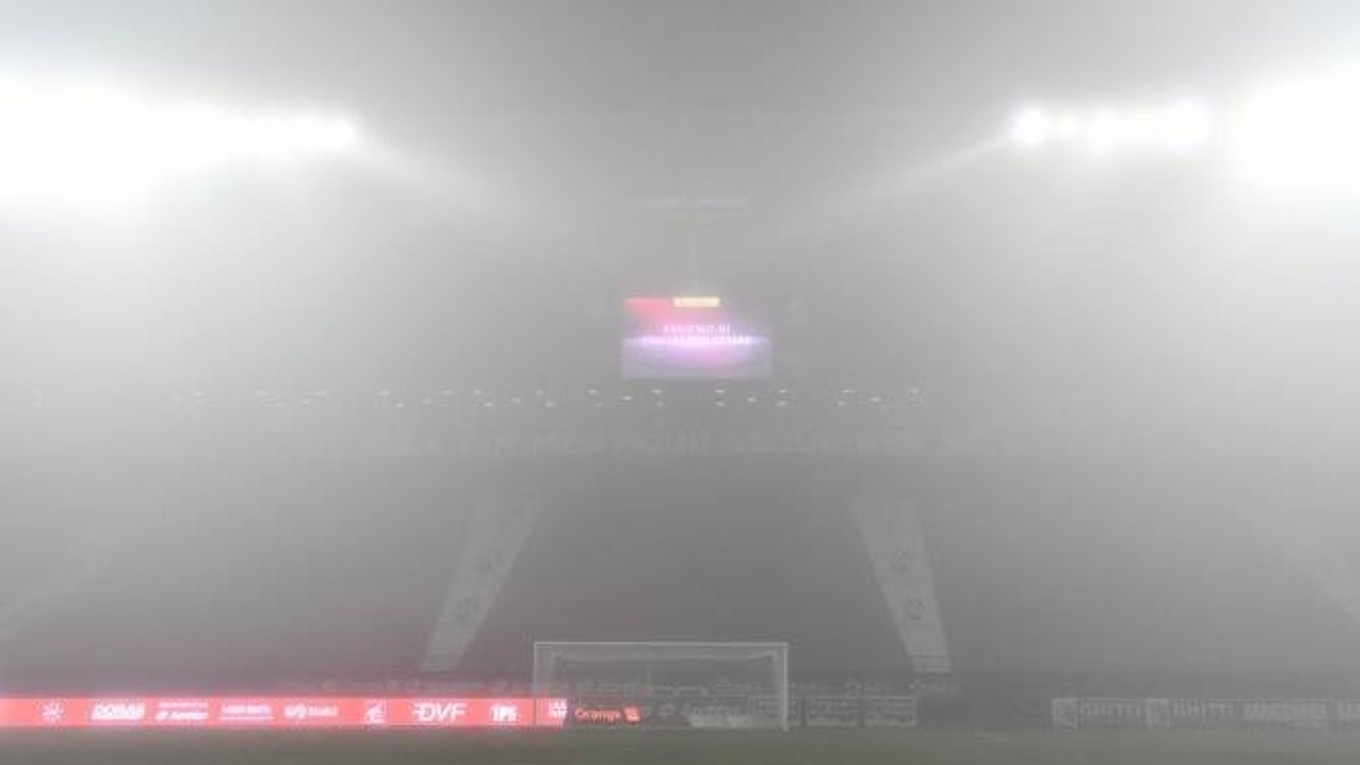 Denník L'Equipe informoval, že nad štadiónom v dejisku stretnutia sa drží hustá hmla a znížená viditeľnosť je za hranicou regulárnosti.