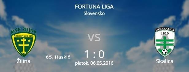 POPRAD. V predohrávanom piatkovom zápase 31. kola Fortuna ligy 2015/16 zvíťazili futbalisti Žiliny v Poprade nad nováčikom zo Skalice 1:0.